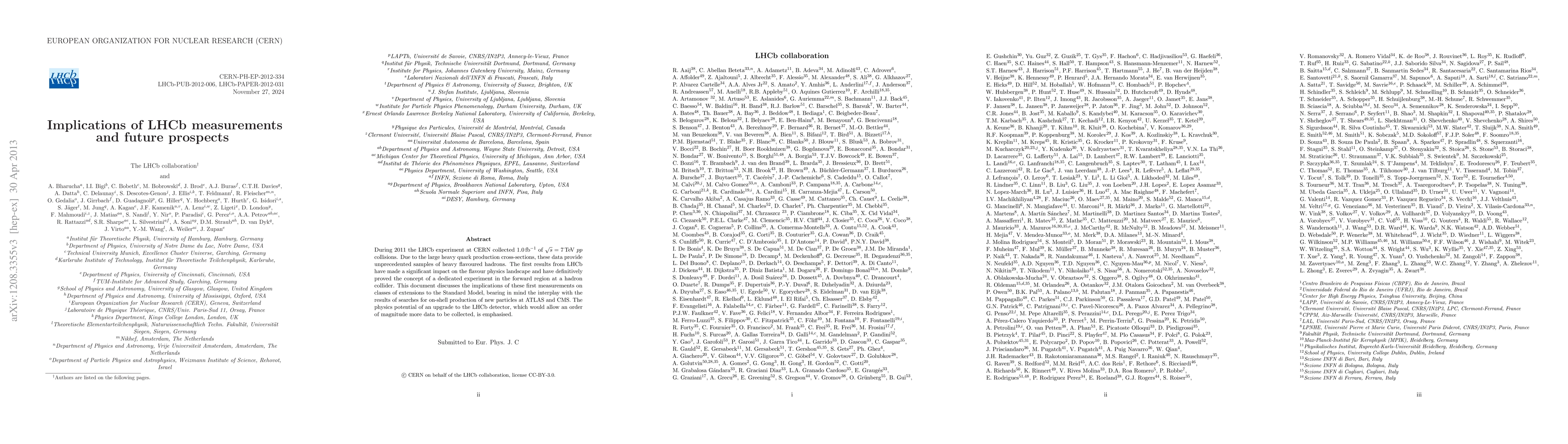 During 2011 the LHCb experiment at CERN collected 1.0 fb-1 of sqrt{s} = 7 TeV pp collisions. Due to the large heavy quark production cross-sections, these data provide unprecedented samples of heavy flavoured hadrons. The first results from LHCb have made a significant impact on the flavour physics landscape and have definitively proved the concept of a dedicated experiment in the forward region at a hadron collider. This document discusses the implications of these first measurements on classes of extensions to the Standard Model, bearing in mind the interplay with the results of searches for on-shell production of new particles at ATLAS and CMS. The physics potential of an upgrade to the LHCb detector, which would allow an order of magnitude more data to be collected, is emphasised.