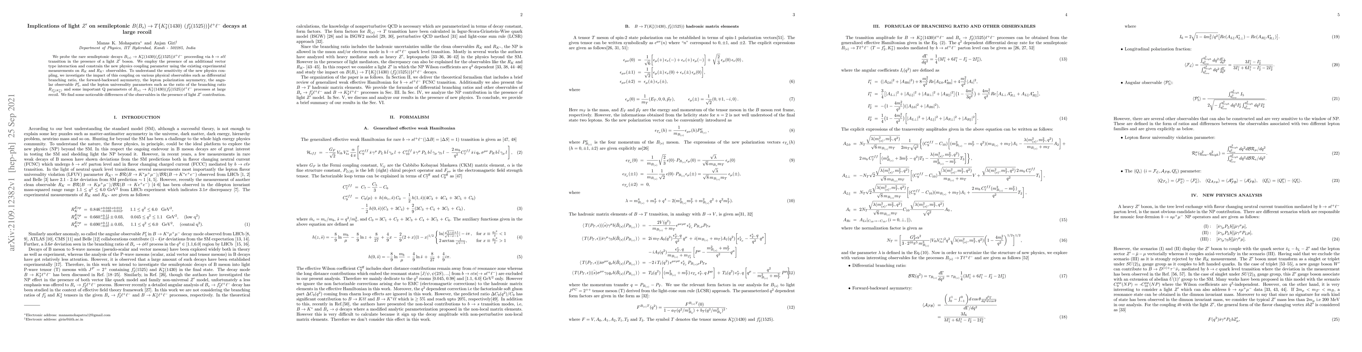 This paper investigates the impact of a light $Z^{\prime}$ boson on rare semileptonic $B_{(s)} \to K_2^*(1430)(f_2'(1525))\ell^+\ell^-$ decays, focusing on the $b\to s \ell \ell$ transition. It examines various physical observables and finds noticeable differences due to the presence of the $Z^{\prime}$ boson.