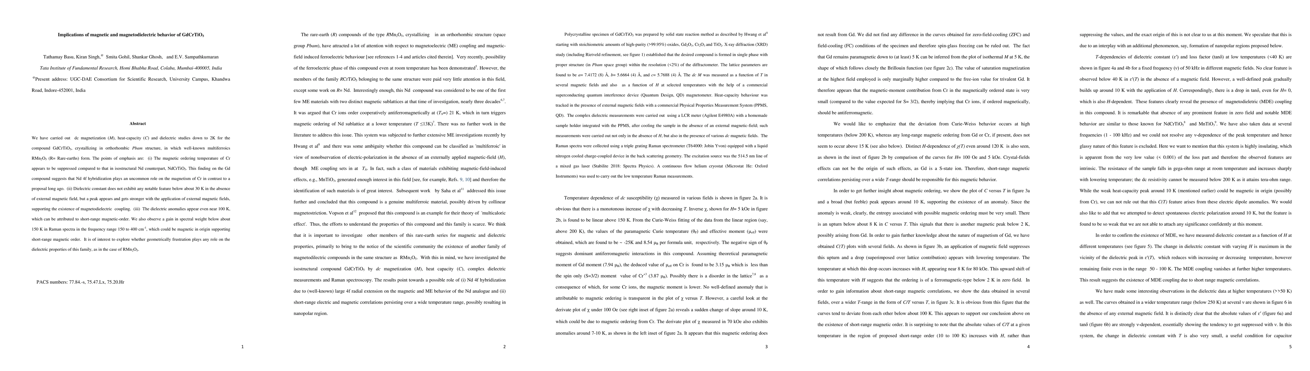 We have carried out dc magnetization (M), heat-capacity (C) and dielectric studies down to 2K for the compound GdCrTiO5, crystallizing in orthorhombic Pbam structure, in which well-known multiferroics RMn2O5 (R= Rare-earths) form. The points of emphasis are: (i) The magnetic ordering temperature of Cr appears to be suppressed compared to that in isostructural Nd counterpart, NdCrTiO5, for which the Neel temperature is about 21 K. This finding on the Gd compound suggests that Nd 4f orbital plays a role on the magnetism of Cr in contrast to a proposal long ago. (ii) Dielectric constant does not exhibit any notable feature below about 30 K in the absence of external magnetic field, but a peak appears and gets stronger with the application of external magnetic fields, supporting the existence of magnetodielectric coupling. (iii) The dielectric anomalies appear even near 100 K, which can be attributed to short-range magnetic-order. We also observe a gain in spectral weight below about 150 K in Raman spectra in the frequency range 150 to 400 cm-1, which could be magnetic in origin supporting short-range magnetic order. It is of interest to explore whether geometrically frustration plays any role on the dielectric properties of this family, as in the case of RMn2O5.