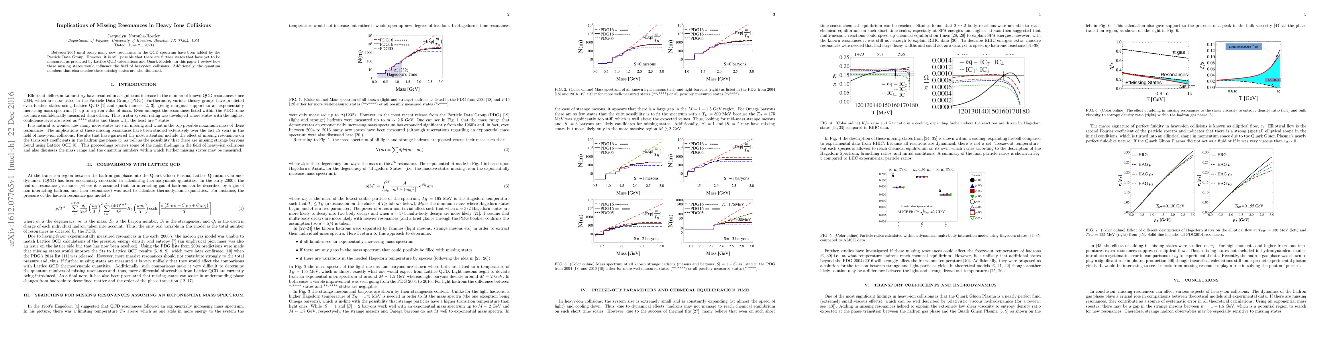 Between 2004 until today many new resonances in the QCD spectrum have been added by the Particle Data Group. However, it is still possible that there are further states that have yet to be measured, as predicted by Lattice QCD calculations and Quark Models. In this paper I review how these missing states would influence the field of heavy-ion collisions. Additionally, the quantum numbers that characterize these missing states are also discussed.