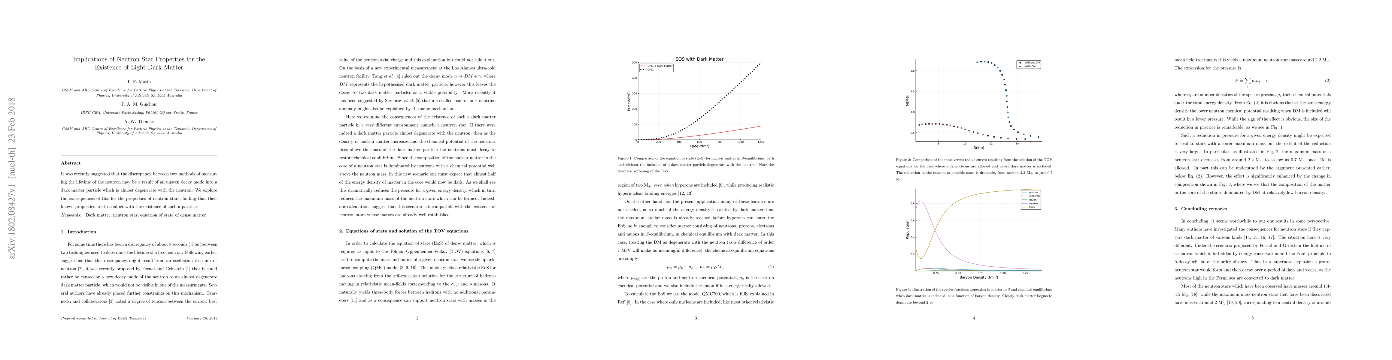 It was recently suggested that the discrepancy between two methods of measuring the lifetime of the neutron may be a result of an unseen decay mode into a dark matter particle which is almost degenerate with the neutron. We explore the consequences of this for the properties of neutron stars, finding that their known properties are in conflict with the existence of such a particle.