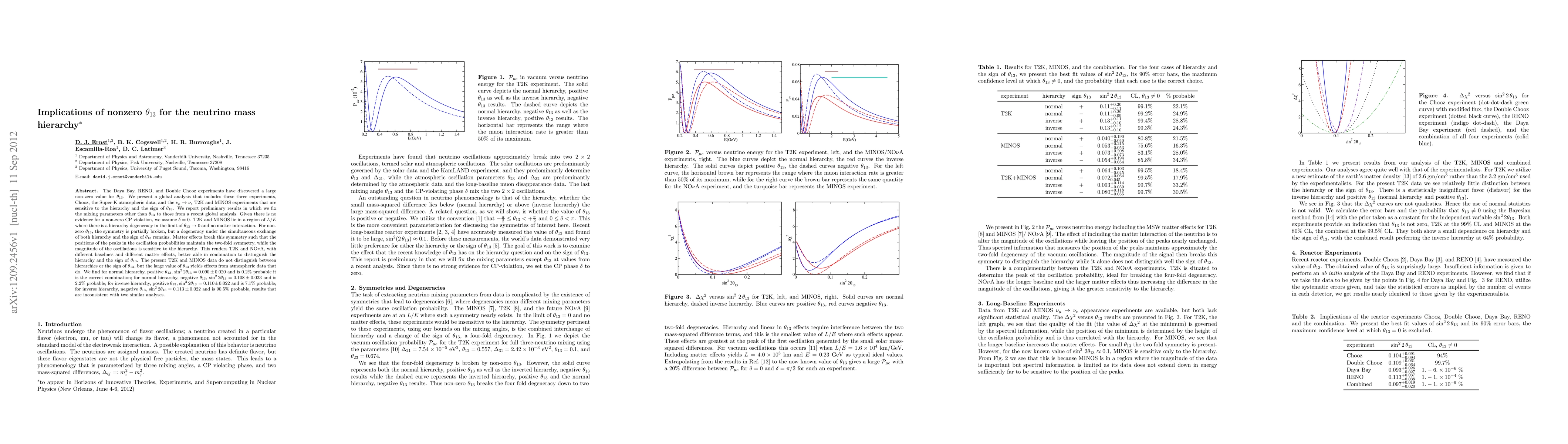 The Daya Bay, RENO, and Double Chooz experiments have discovered a large non-zero value for $\theta_{13}$. We present a global analysis that includes these three experiments, Chooz, the Super-K atmospheric data, and the $\nu_\mu \rightarrow \nu_e$ T2K and MINOS experiments that are sensitive to the hierarchy and the sign of $\theta_{13}$. We report preliminary results in which we fix the mixing parameters other than $\theta_{13}$ to those from a recent global analysis. Given there is no evidence for a non-zero CP violation, we assume $\delta=0$. T2K and MINOS lie in a region of $L/E$ where there is a hierarchy degeneracy in the limit of $\theta_{13}\rightarrow 0$ and no matter interaction. For non-zero $\theta_{13}$, the symmetry is partially broken, but a degeneracy under the simultaneous exchange of both hierarchy and the sign of $\theta_{13}$ remains. Matter effects break this symmetry such that the positions of the peaks in the oscillation probabilities maintain the two-fold symmetry, while the magnitude of the oscillations is sensitive to the hierarchy. This renders T2K and NO$\nu$A, with different baselines and different matter effects, better able in combination to distinguish the hierarchy and the sign of $\theta_{13}$. The large value of $\theta_{13}$ yields effects from atmospheric data that distinguish hierarchies. We find for normal hierarchy, positive $\theta_{13}$, $\sin^22\theta_{13}=0.090\pm0.020$ and is 0.2% probable it is the correct combination; for normal hierarchy, negative $\theta_{13}$, $\sin^22\theta_{13}=0.108\pm0.023$ and is 2.2% probable; for inverse hierarchy, positive $\theta_{13}$, $\sin^22\theta_{13}=0.110\pm0.022$ and is 7.1% probable; for inverse hierarchy, negative $\theta_{13}$, $\sin^22\theta_{13}=0.113\pm0.022$ and is 90.5% probable, results that are inconsistent with two similar analyses.