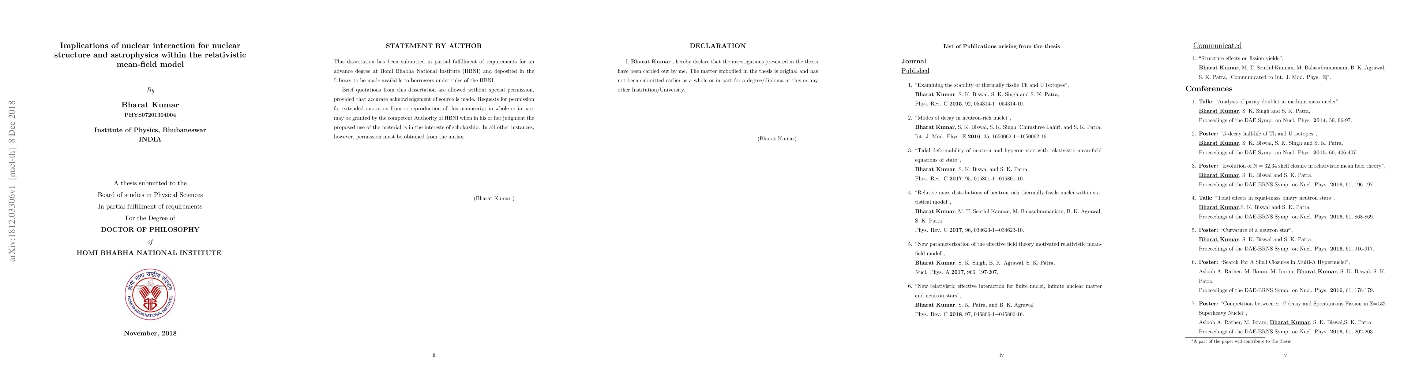 Summary: This dissertation investigates how nuclear interactions influence nuclear structure and astrophysical phenomena using the relativistic mean-field (RMF) model, providing insights into the underlying mechanisms governing these processes.