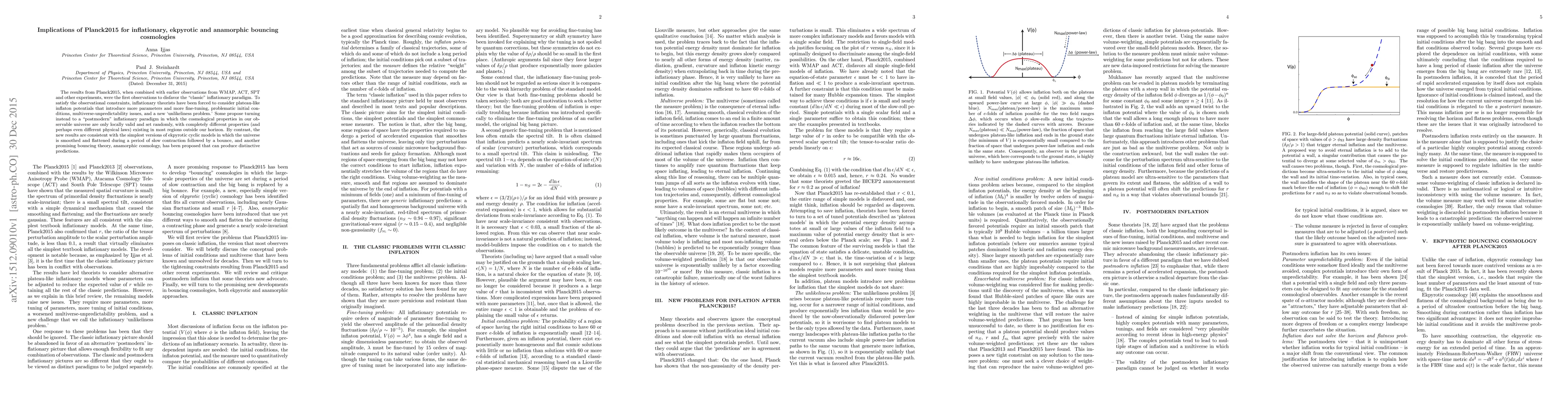 The results from Planck2015, when combined with earlier observations from WMAP, ACT, SPT and other experiments, were the first observations to disfavor the "classic" inflationary paradigm. To satisfy the observational constraints, inflationary theorists have been forced to consider plateau-like inflaton potentials that introduce more parameters and more fine-tuning, problematic initial conditions, multiverse-unpredictability issues, and a new 'unlikeliness problem.' Some propose turning instead to a "postmodern" inflationary paradigm in which the cosmological properties in our observable universe are only locally valid and set randomly, with completely different properties (and perhaps even different physical laws) existing in most regions outside our horizon. By contrast, the new results are consistent with the simplest versions of ekpyrotic cyclic models in which the universe is smoothed and flattened during a period of slow contraction followed by a bounce, and another promising bouncing theory, anamorphic cosmology, has been proposed that can produce distinctive predictions.