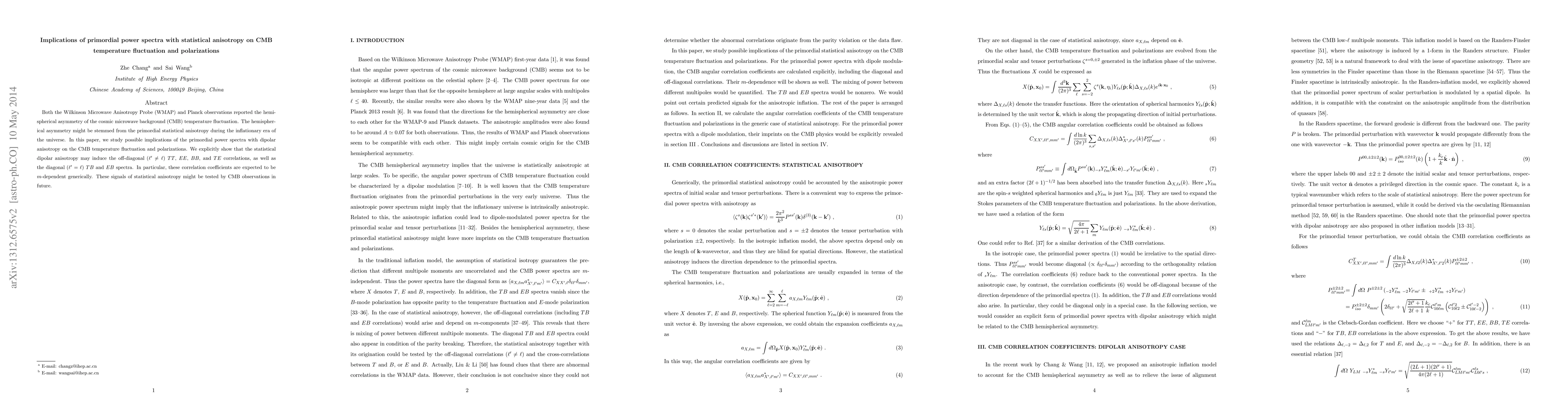 Both the Wilkinson Microwave Anisotropy Probe (WMAP) and Planck observations reported the hemispherical asymmetry of the cosmic microwave background (CMB) temperature fluctuation. The hemispherical asymmetry might be stemmed from the primordial statistical anisotropy during the inflationary era of the universe. In this paper, we study possible implications of the primordial power spectra with dipolar anisotropy on the CMB temperature fluctuation and polarizations. We explicitly show that the statistical dipolar anisotropy may induce the off-diagonal (\(\ell'\neq\ell\)) $TT$, $EE$, $BB$, and $TE$ correlations, as well as the diagonal (\(\ell'=\ell\)) $TB$ and $EB$ spectra. In particular, these correlation coefficients are expected to be \(m\)-dependent generically. These signals of statistical anisotropy might be tested by CMB observations in future.