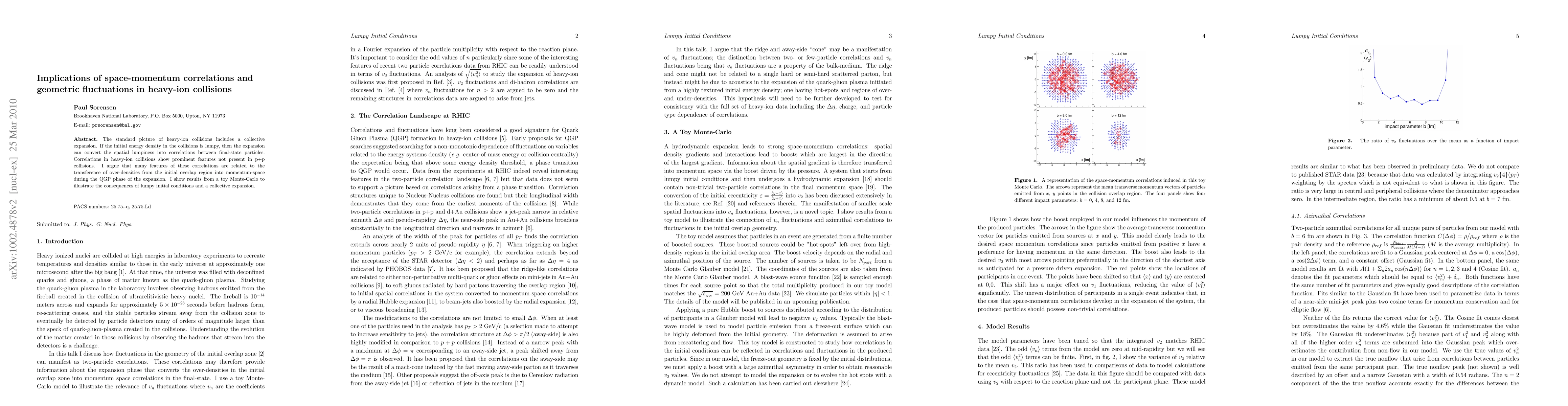 This paper explores how space-momentum correlations in heavy-ion collisions arise from initial energy density fluctuations, converting spatial lumpiness into momentum-space correlations. Results from a Monte-Carlo simulation demonstrate the impact of these initial conditions on the observed features in heavy-ion collision data.