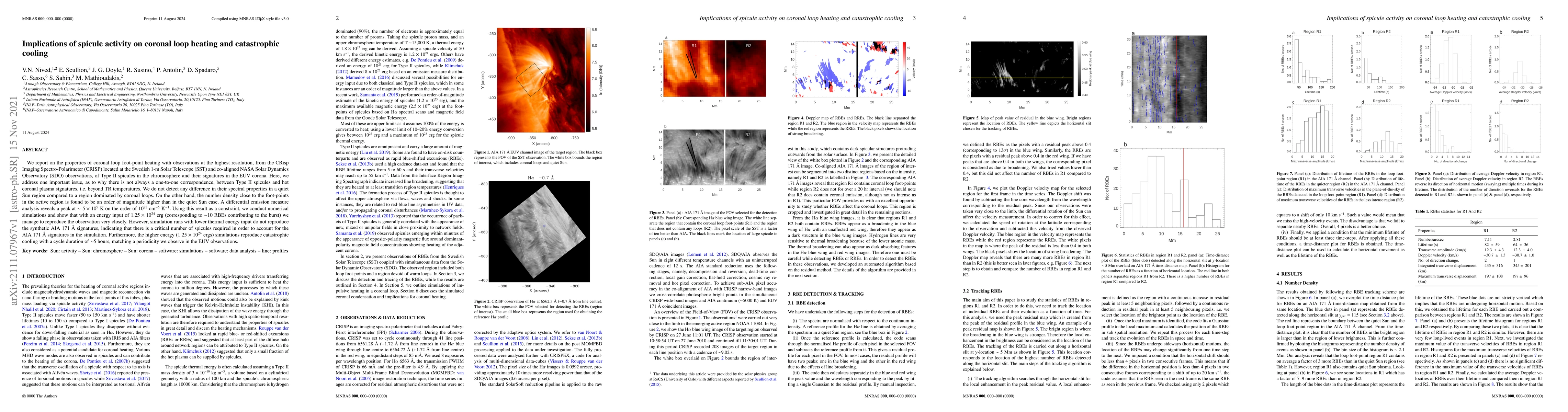 The study uses high-resolution observations from the Swedish 1-m Solar Telescope and SDO to investigate the relationship between Type II spicules in the chromosphere and hot coronal plasma. Despite similar spectral properties, not all spicules create coronal loop heating beyond transition region temperatures. The research finds that higher number densities at active region foot-points contribute to this heating. Simulations with an energy input of $1.25 imes 10^{24}$ ergs closely match observations, reproducing catastrophic cooling cycles of about 5 hours, consistent with EUV observation periods.