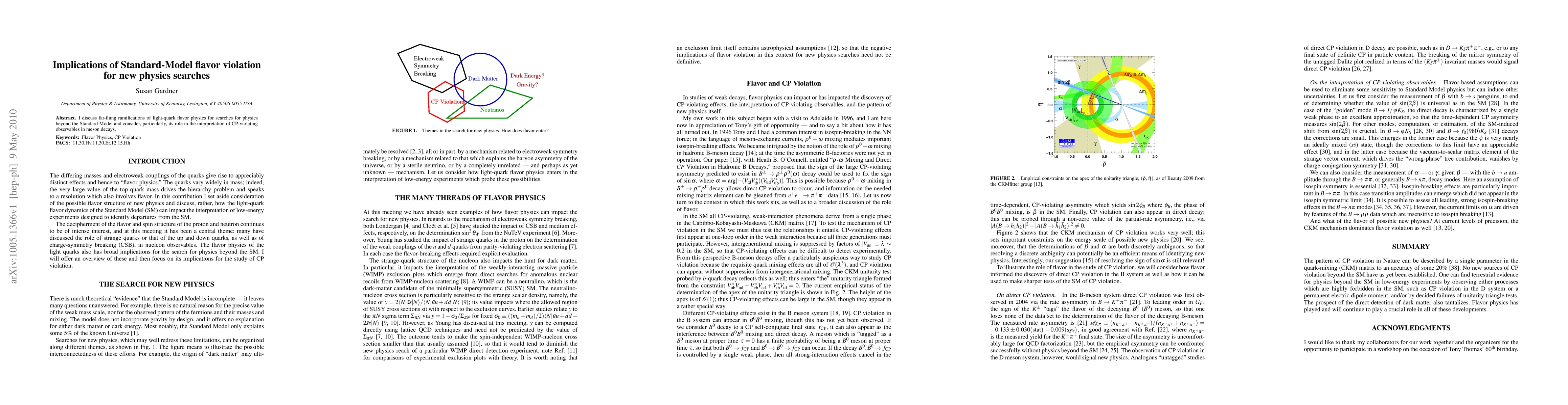 I discuss far-flung ramifications of light-quark flavor physics for searches for physics beyond the Standard Model and consider, particularly, its role in the interpretation of CP-violating observables in meson decays.