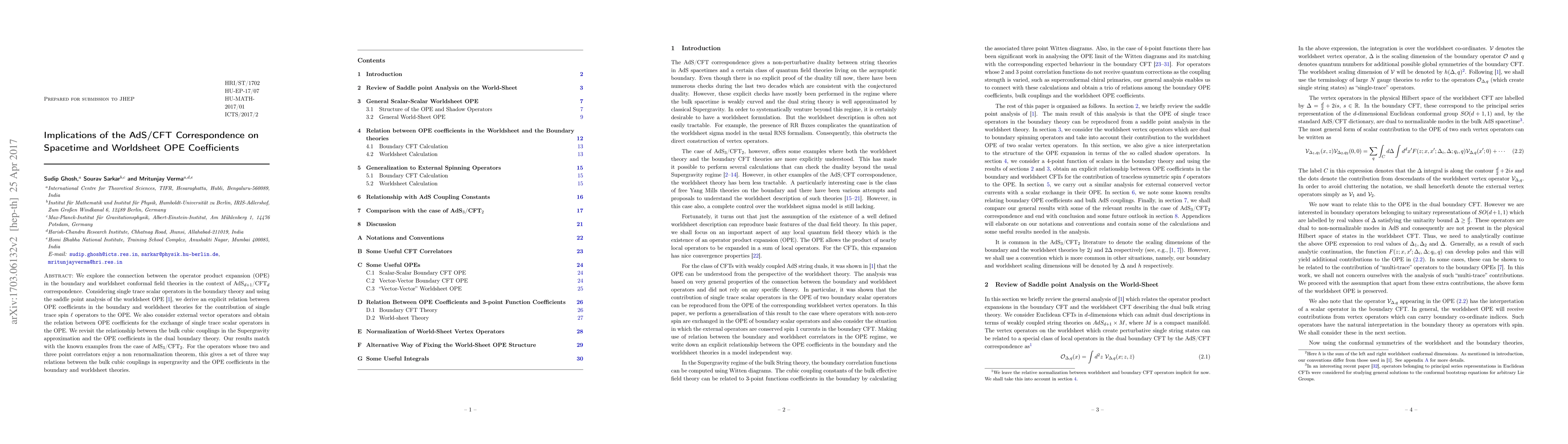 This paper establishes a connection between operator product expansion (OPE) coefficients in the boundary and worldsheet conformal field theories via the AdS/CFT correspondence, deriving explicit relations for single trace scalar operators. It also relates bulk cubic couplings in Supergravity to OPE coefficients, aligning with known examples from AdS$_3$/CFT$_2$.
