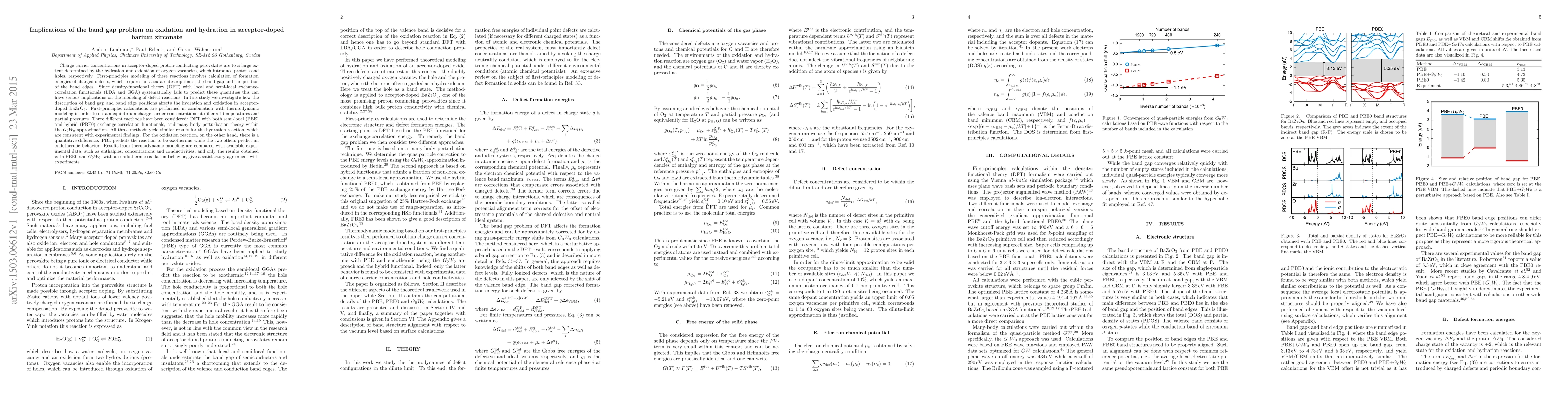 This paper investigates the impact of band gap inaccuracies on modeling hydration and oxidation in acceptor-doped barium zirconate using first-principles calculations. While all methods agree on hydration, PBE predicts exothermic oxidation, whereas PBE0 and $G_0W_0$ predict endothermic oxidation, aligning better with experimental data.