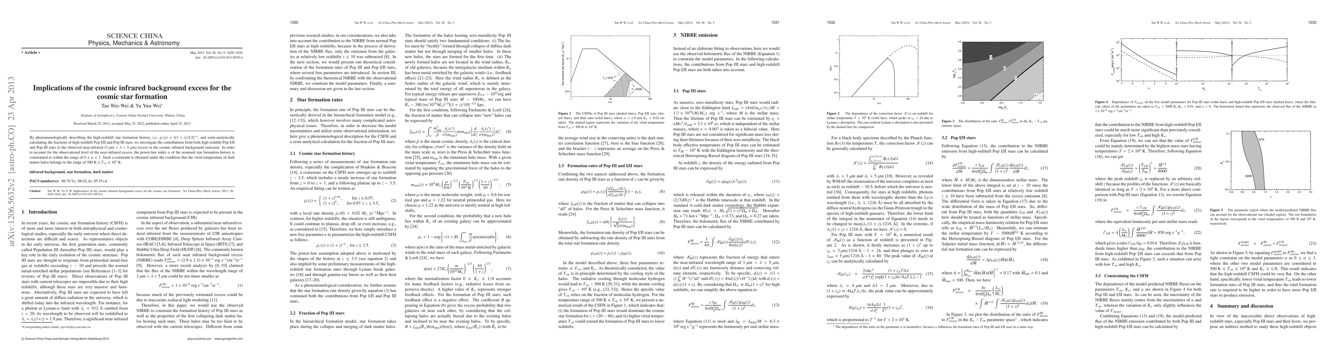 This paper investigates the contributions of high-redshift Pop I/II and Pop III stars to the observed near-infrared excess in the cosmic infrared background, finding that the star formation history's power-law index $\alpha$ must be within $0\lesssim\alpha\lesssim1$ to match observations, with dark matter halos' virial temperatures ranging from $500$ K to $10^4$ K.