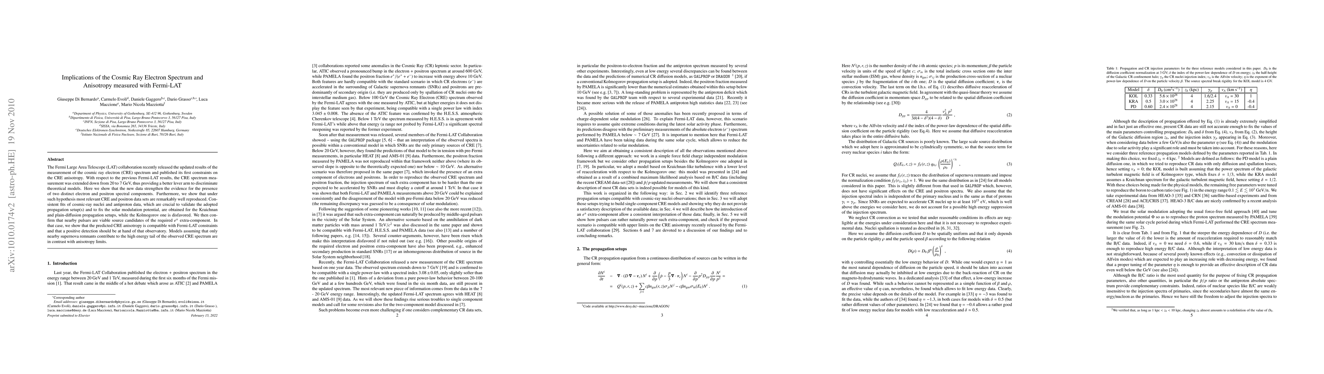 The Fermi-LAT collaboration's updated measurements of the cosmic ray electron spectrum extend down to 7 GeV, revealing two distinct spectral components and supporting nearby pulsars as potential sources. The new anisotropy constraints are consistent with the presence of an extra $e^\pm$ component, but models attributing the high energy tail to supernova remnants alone are incompatible with these limits.