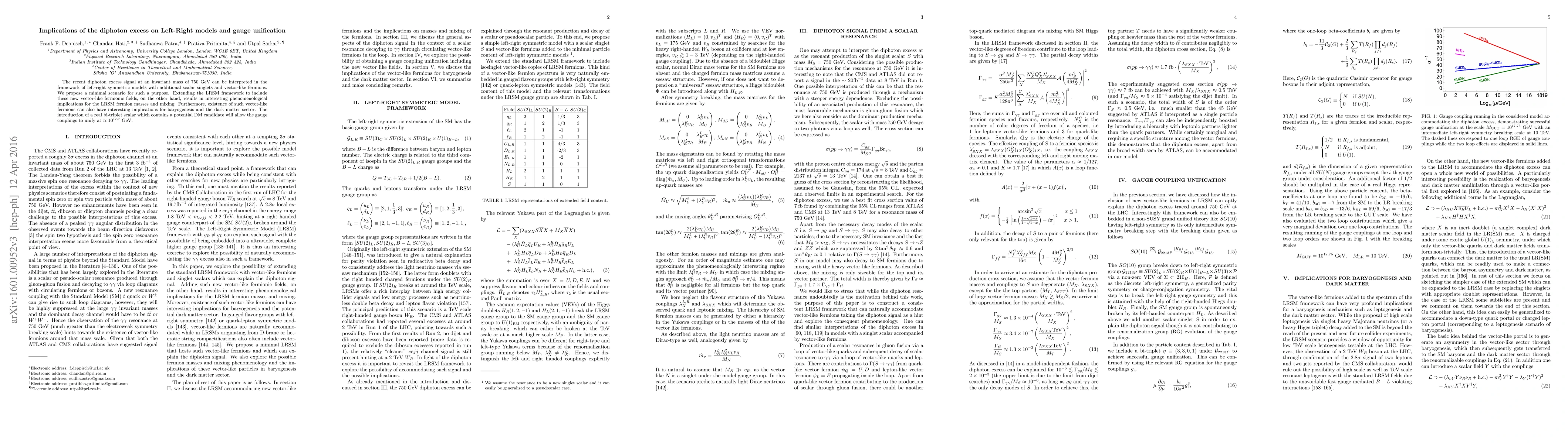 This paper explores how a diphoton excess signal at 750 GeV fits within left-right symmetric models augmented by scalar singlets and vector-like fermions, proposing a minimal scenario. It also discusses the implications for fermion masses, mixing, baryogenesis, and dark matter, and shows that gauge coupling unification occurs at approximately $10^{17.7}$ GeV.