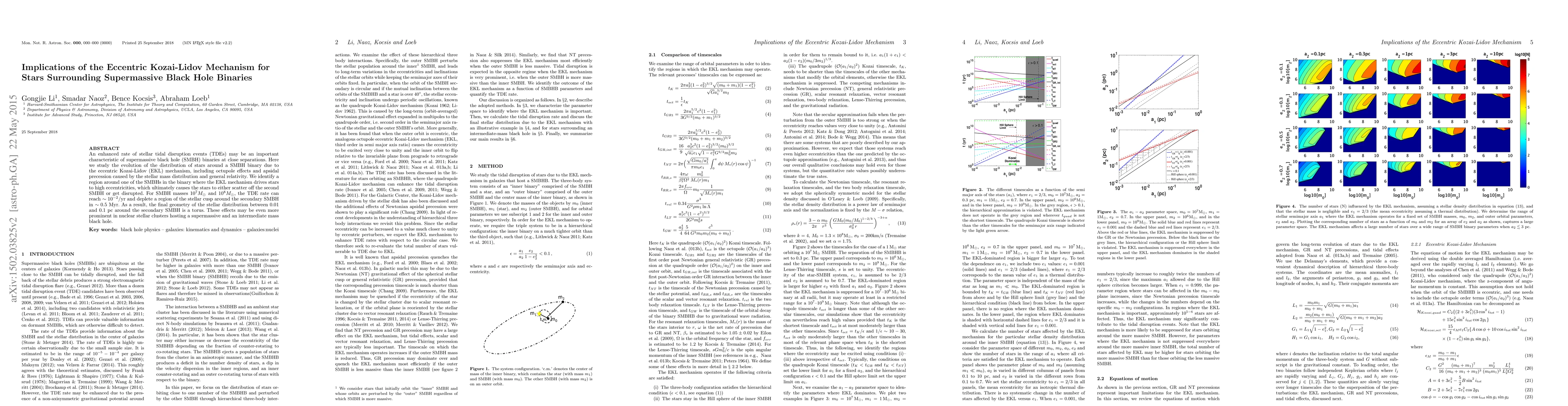 This paper investigates the impact of the eccentric Kozai-Lidov mechanism on the evolution of stars around supermassive black hole binaries, predicting an enhanced rate of tidal disruption events due to high stellar eccentricities driven by the mechanism. The study finds that stars can be scattered or disrupted, leading to a toroidal stellar distribution around the secondary black hole.