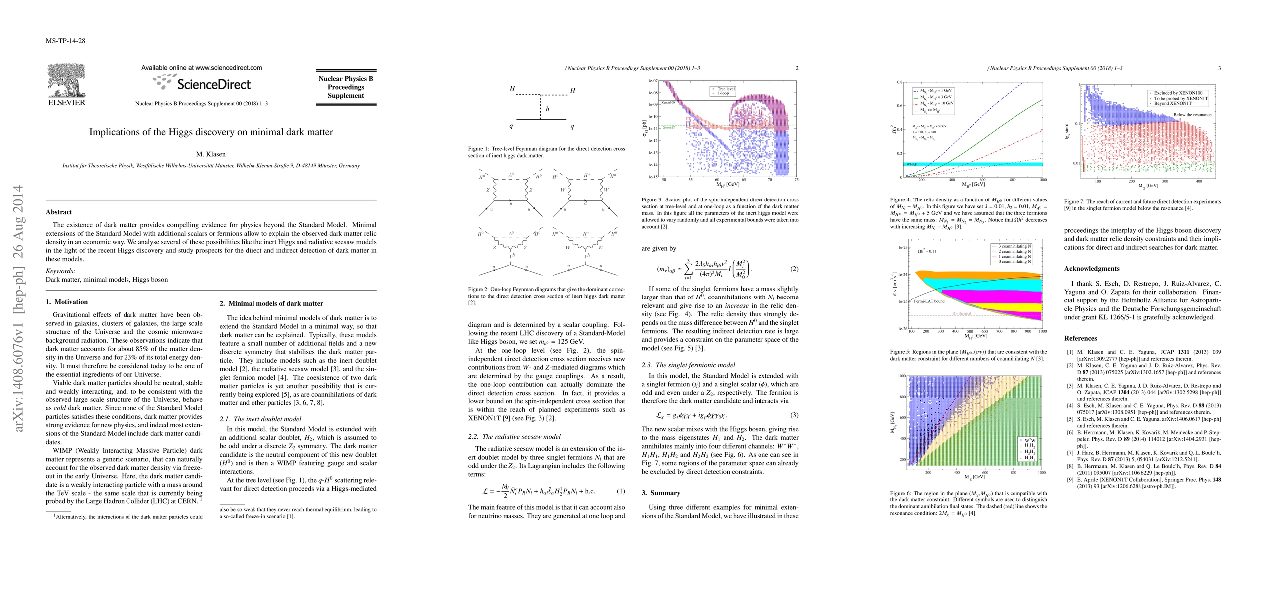 This paper examines how the discovery of the Higgs boson impacts minimal dark matter models, specifically exploring inert Higgs and radiative seesaw models. It assesses the potential for direct and indirect detection of dark matter within these frameworks.