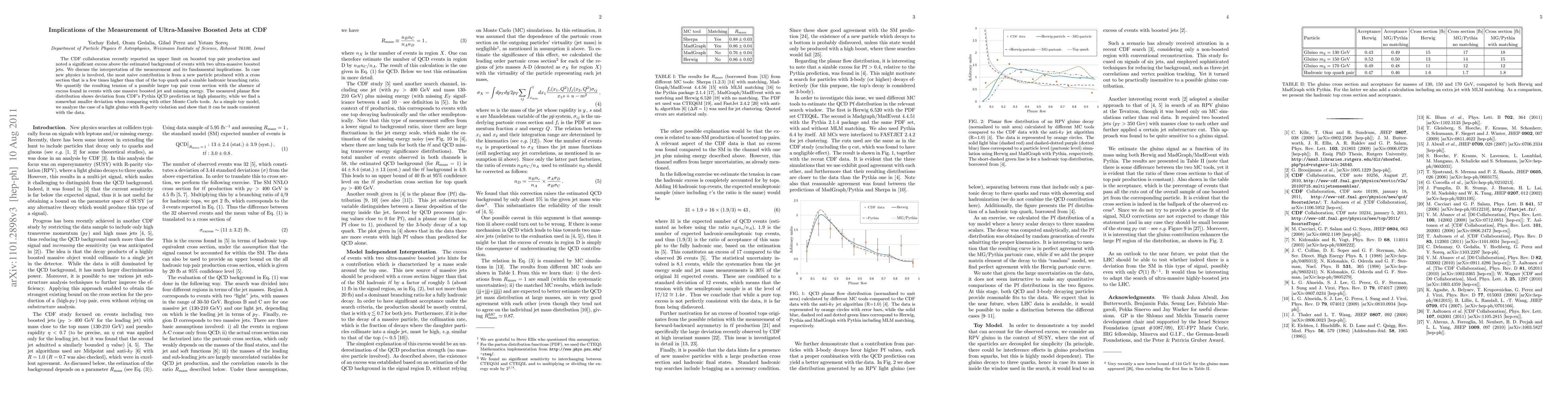 The CDF collaboration recently reported an upper limit on boosted top pair production and noted a significant excess above the estimated background of events with two ultra-massive boosted jets. We discuss the interpretation of the measurement and its fundamental implications. In case new physics is involved, the most naive contribution is from a new particle produced with a cross section that is a few times higher than that of the top quark and a sizable hadronic branching ratio. We quantify the resulting tension of a possible larger top pair cross section with the absence of excess found in events with one massive boosted jet and missing energy. The measured planar flow distribution shows deviation from CDF's Pythia QCD prediction at high planarity, while we find a somewhat smaller deviation when comparing with other Monte Carlo tools. As a simple toy model, we analyze the case of a light gluino with R-parity violation and show that it can be made consistent with the data.
