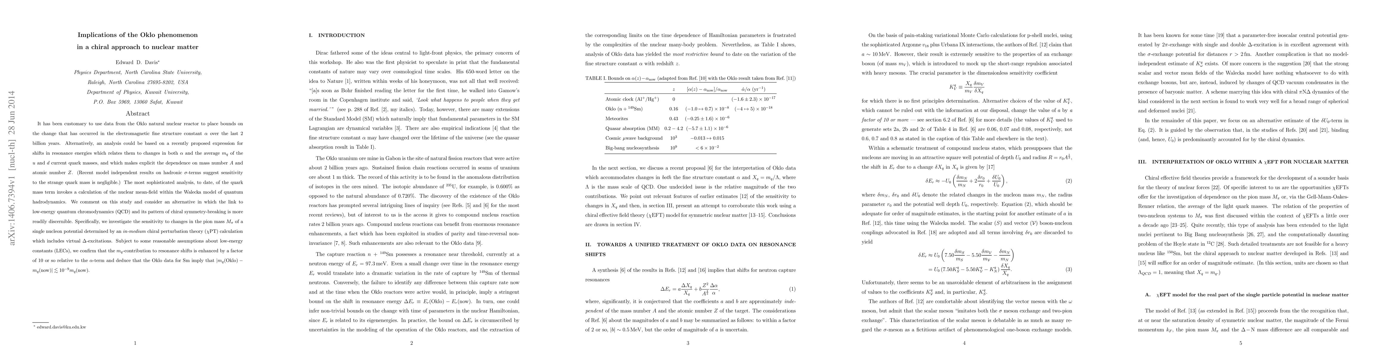 It has been customary to use data from the Oklo natural nuclear reactor to place bounds on the change that has occurred in the electromagnetic fine structure constant $\alpha$ over the last 2 billion years. Alternatively, an analysis could be based on a recently proposed expression for shifts in resonance energies which relates them to changes in both $\alpha$ and the average $m_q$ of the $u$ and $d$ current quark masses, and which makes explicit the dependence on mass number $A$ and atomic number $Z$. (Recent model independent results on hadronic $\sigma$-terms suggest sensitivity to the strange quark mass is negligible.) The most sophisticated analysis, to date, of the quark mass term invokes a calculation of the nuclear mean-field within the Walecka model of quantum hadrodynamics. We comment on this study and consider an alternative in which the link to low-energy quantum chromodynamics (QCD) and its pattern of chiral symmetry-breaking is more readily discernible. Specifically, we investigate the sensitivity to changes in the pion mass $M_\pi$ of a single nucleon potential determined by an in-medium chiral perturbation theory ($\chi$PT) calculation which includes virtual $\mathrm{\Delta}$-excitations. Subject to some reasonable assumptions about low-energy constants (LECs), we confirm that the $m_q$-contribution to resonance shifts is enhanced by a factor of 10 or so relative to the $\alpha$-term and deduce that the Oklo data for Sm imply that $|m_q(\mathrm{Oklo})- m_q(\mathrm{now})| \lesssim 10^{-9}m_q(\mathrm{now})$.