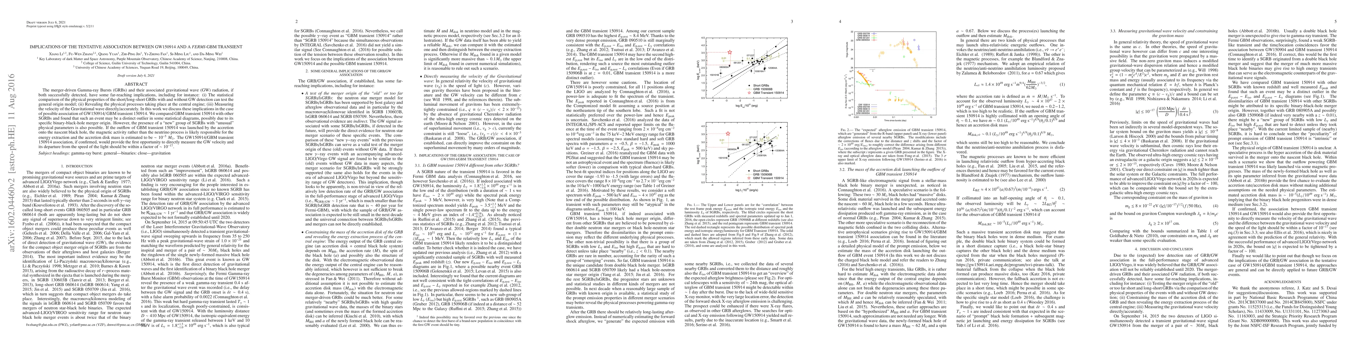 The merger-driven Gamma-ray Bursts (GRBs) and their associated gravitational wave (GW) radiation, if both successfully detected, have some far-reaching implications, including for instance: (i) The statistical comparison of the physical properties of the short/long-short GRBs with and without GW detection can test the general origin model; (ii) Revealing the physical processes taking place at the central engine; (iii) Measuring the velocity of the Gravitational wave directly/accurately. In this work we discuss these implications in the case of possible association of GW150914/ GBM transient 150914. We compared GBM transient 150914 with other SGRBs and found that such an event {may be} a distinct outlier in some statistical diagrams, possibly due to its specific binary-black-hole merger origin. However, the presence of a "new" group of SGRBs with "unusual" physical parameters is also possible. If the outflow of GBM transient 150914 was launched by the accretion onto the nascent black hole, the magnetic activity rather than the neutrino process is likely responsible for the energy extraction and the accretion disk mass is estimated to be $\sim 10^{-5}~M_\odot$. The GW150914/GBM transient 150914 association, {if confirmed, would} provide the first opportunity to directly measure the GW velocity and its departure from the speed of the light {should be within} a factor of $\sim 10^{-17}$.
