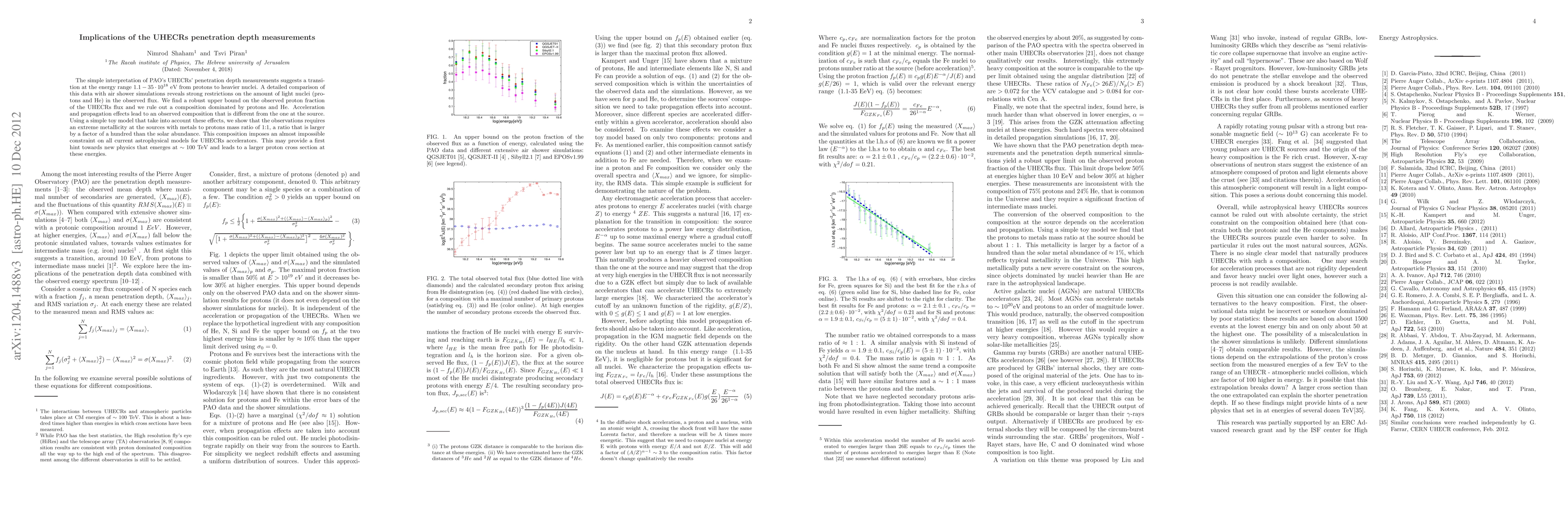 The simple interpretation of PAO's UHECRs' penetration depth measurements suggests a transition at the energy range $1.1 - 35 \cdot 10^{18} $ eV from protons to heavier nuclei. A detailed comparison of this data with air shower simulations reveals strong restrictions on the amount of light nuclei (protons and He) in the observed flux. We find a robust upper bound on the observed proton fraction of the UHECRs flux and we rule out a composition dominated by protons and He. Acceleration and propagation effects lead to an observed composition that is different from the one at the source. Using a simple toy model that take into account these effects, we show that the observations requires an extreme metallicity at the sources with metals to protons mass ratio of 1:1, a ratio that is larger by a factor of a hundred than the solar abundance. This composition imposes an almost impossible constraint on all current astrophysical models for UHECRs accelerators. This may provide a first hint towards new physics that emerges at $\sim 100$ TeV and leads to a larger proton cross section at these energies.