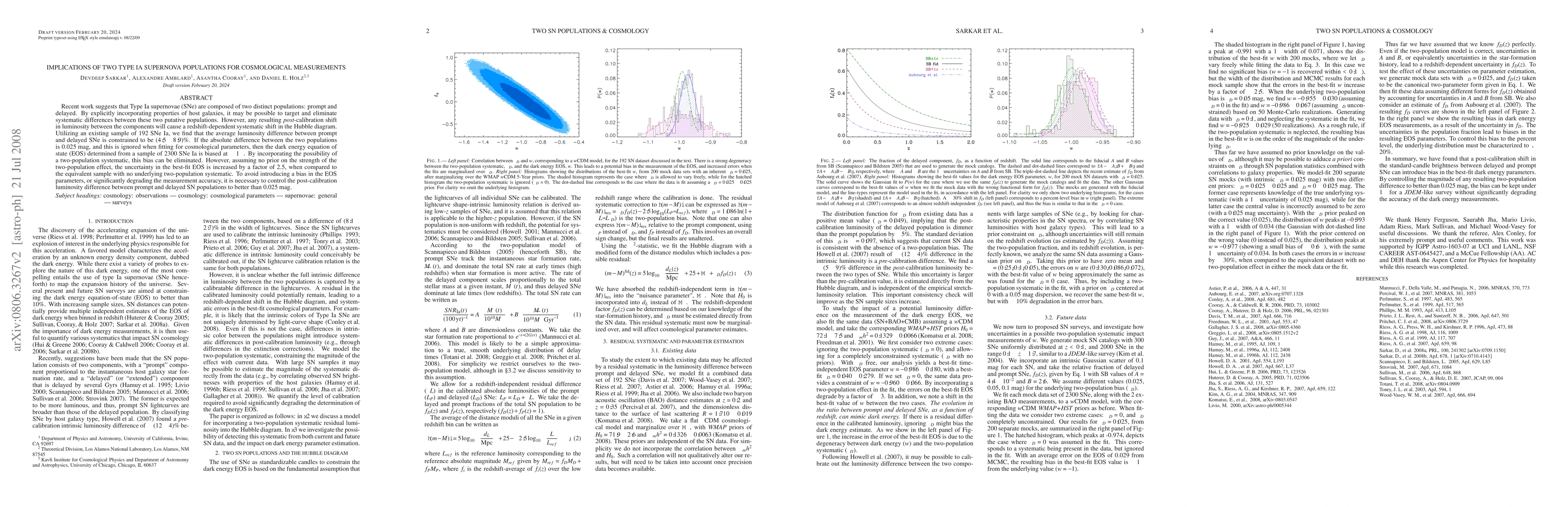 Recent work suggests that Type Ia supernovae (SNe) are composed of two distinct populations: prompt and delayed. By explicitly incorporating properties of host galaxies, it may be possible to target and eliminate systematic differences between these two putative populations. However, any resulting {\em post}-calibration shift in luminosity between the components will cause a redshift-dependent systematic shift in the Hubble diagram. Utilizing an existing sample of 192 SNe Ia, we find that the average luminosity difference between prompt and delayed SNe is constrained to be $(4.5 \pm 8.9)%$. If the absolute difference between the two populations is 0.025 mag, and this is ignored when fitting for cosmological parameters, then the dark energy equation of state (EOS) determined from a sample of 2300 SNe Ia is biased at $\sim1\sigma$. By incorporating the possibility of a two-population systematic, this bias can be eliminated. However, assuming no prior on the strength of the two-population effect, the uncertainty in the best-fit EOS is increased by a factor of 2.5, when compared to the equivalent sample with no underlying two-population systematic. To avoid introducing a bias in the EOS parameters, or significantly degrading the measurement accuracy, it is necessary to control the post-calibration luminosity difference between prompt and delayed SN populations to better than 0.025 mag.