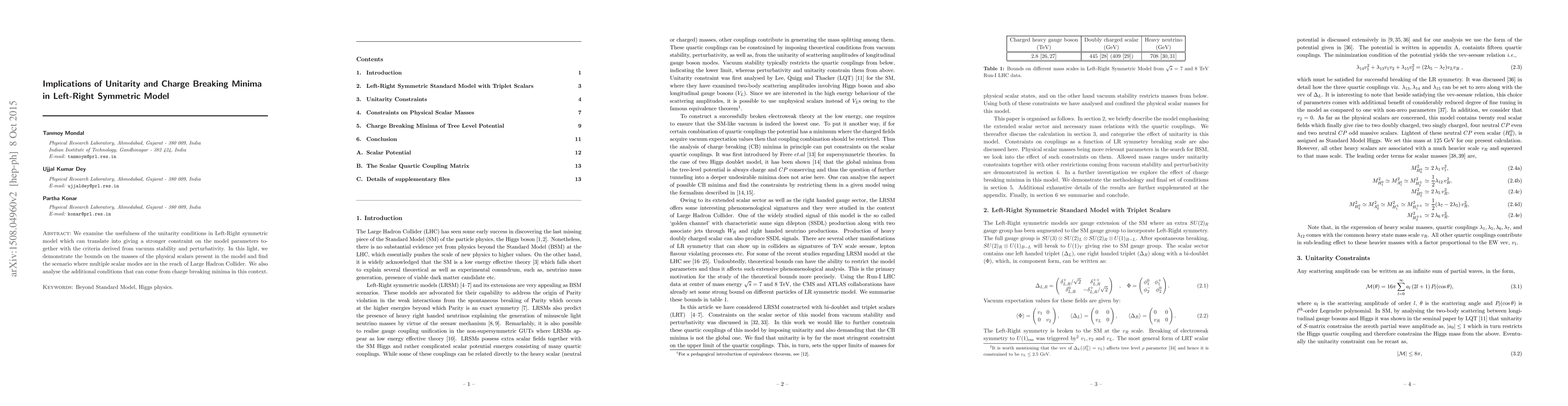 This paper investigates the unitarity conditions in the Left-Right symmetric model, providing stronger constraints on its parameters alongside vacuum stability and perturbativity criteria. It finds mass bounds for the model's scalars, highlighting scenarios where multiple scalar modes are accessible to the Large Hadron Collider, and examines implications from charge breaking minima.