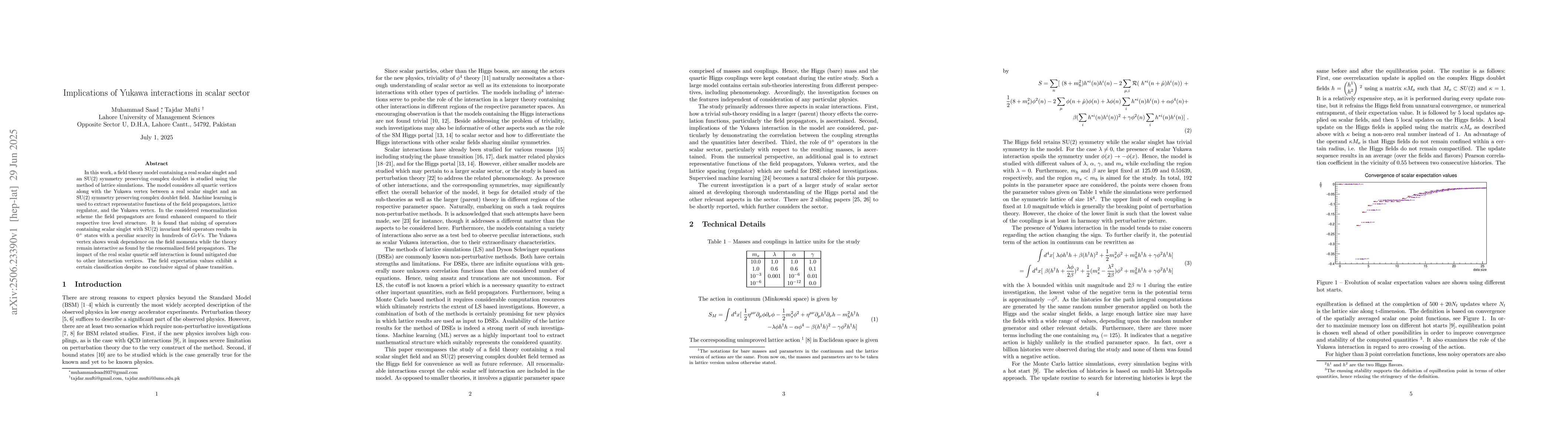 In this work, a field theory model containing a real scalar singlet and an SU(2) symmetry preserving complex doublet is studied using the method of lattice simulations. The model considers all quartic vertices along with the Yukawa vertex between a real scalar singlet and an SU(2) symmetry preserving complex doublet field. Machine learning is used to extract representative functions of the field propagators, lattice regulator, and the Yukawa vertex. In the considered renormalization scheme the field propagators are found enhanced compared to their respective tree level structure. It is found that mixing of operators containing scalar singlet with SU(2) invariant field operators results in $0^{+}$ states with a peculiar scarcity in hundreds of $GeV$s. The Yukawa vertex shows weak dependence on the field momenta while the theory remain interactive as found by the renormalized field propagators. The impact of the real scalar quartic self interaction is found mitigated due to other interaction vertices. The field expectation values exhibit a certain classification despite no conclusive signal of phase transition.