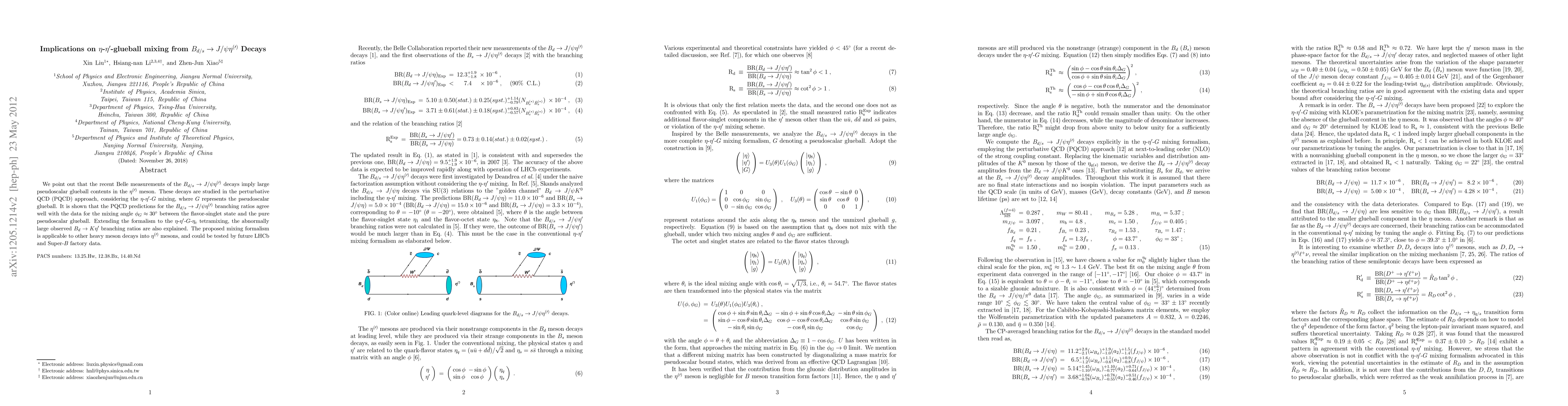 We point out that the recent Belle measurements of the $B_{d/s} \to J/\Psi \eta^{(')}$ decays imply large pseudoscalar glueball contents in the $\eta^{(\prime)}$ meson. These decays are studied in the perturbative QCD (PQCD) approach, considering the $\eta$-$\eta'$-$G$ mixing, where $G$ represents the pseudoscalar glueball. It is shown that the PQCD predictions for the $B_{d/s} \to J/\Psi \eta^{(')}$ branching ratios agree well with the data for the mixing angle $\phi_G\approx 30^\circ$ between the flavor-singlet state and the pure pseudoscalar glueball. Extending the formalism to the $\eta$-$\eta'$-$G$-$\eta_c$ tetramixing, the abnormally large observed $B_d\to K\eta'$ branching ratios are also explained. The proposed mixing formalism is applicable to other heavy meson decays into $\eta^{(\prime)}$ mesons, and could be tested by future LHCb and Super-$B$ factory data.