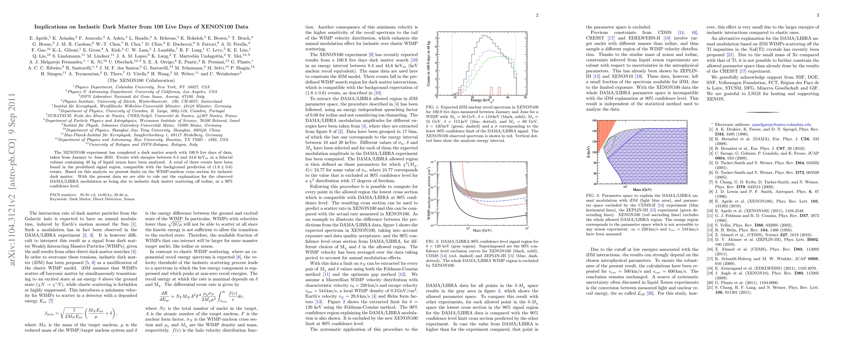 The XENON100 experiment analyzed 100.9 live days of data, finding three events in a 48kg volume, consistent with background predictions. The study sets limits on the WIMP-nucleon cross section for inelastic dark matter, ruling out inelastic dark matter as the explanation for DAMA/LIBRA modulation at 90% confidence.