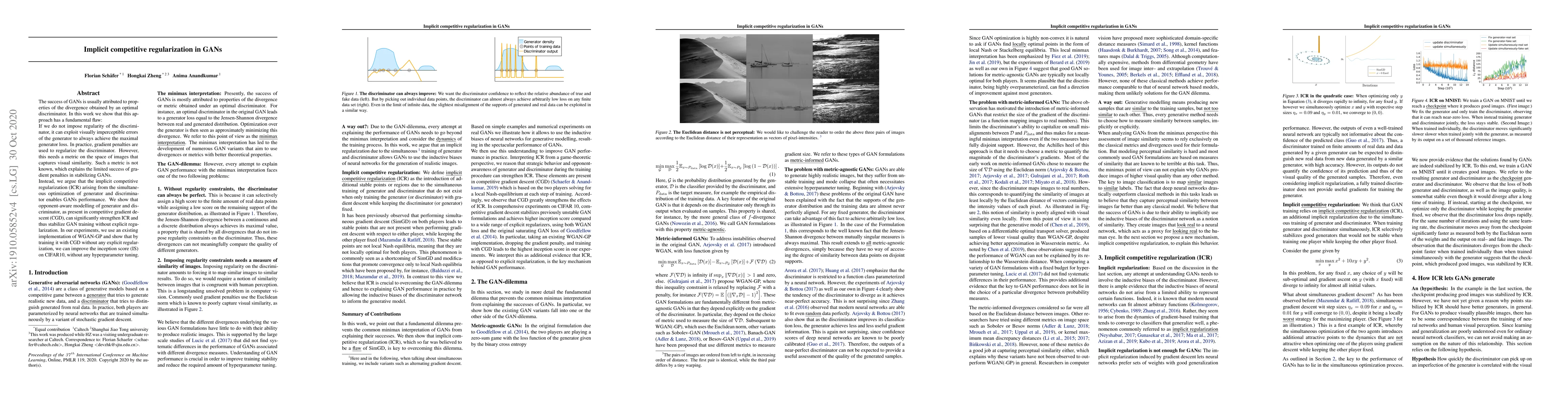 This paper argues that the stability of GAN training is due to implicit competitive regularization (ICR) rather than gradient penalties. It demonstrates that opponent-aware modeling through competitive gradient descent (CGD) can enhance ICR, leading to improved GAN performance without explicit regularization, as shown by higher inception scores on CIFAR10.