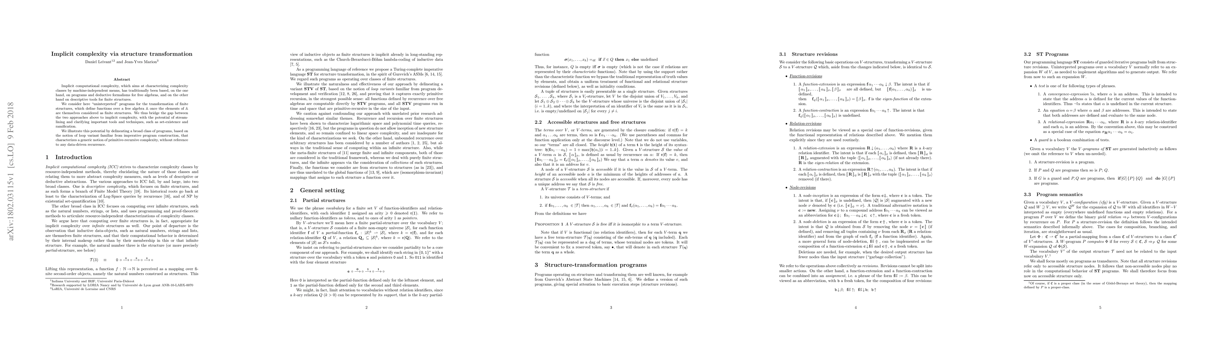 Implicit computational complexity, which aims at characterizing complexity classes by machine-independent means, has traditionally been based, on the one hand, on programs and deductive formalisms for free algebras, and on the other hand on descriptive tools for finite structures. We consider here "uninterpreted" programs for the transformation of finite structures, which define functions over a free algebra A once the elements of A are themselves considered as finite structures. We thus bridge the gap between the two approaches above to implicit complexity, with the potential of streamlining and clarifying important tools and techniques, such as set-existence and ramification. We illustrate this potential by delineating a broad class of programs, based on the notion of loop variant familiar from imperative program construction, that characterizes a generic notion of primitive-recursive complexity, without reference to any data-driven recurrence.