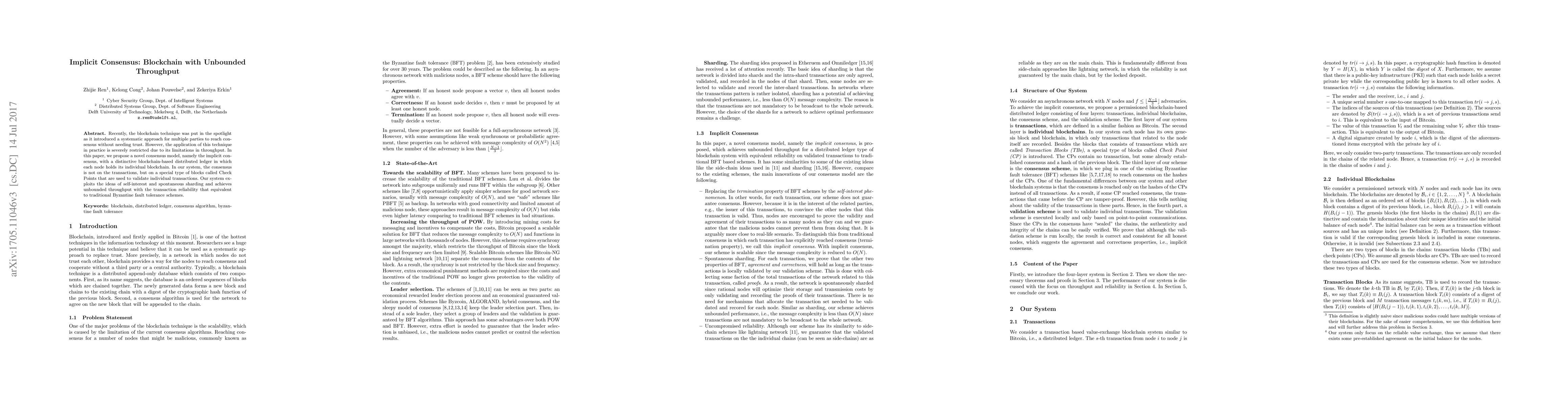 Researchers propose a new blockchain-based consensus model called implicit consensus that achieves unbounded throughput while maintaining transaction reliability, leveraging self-interest and spontaneous sharding.