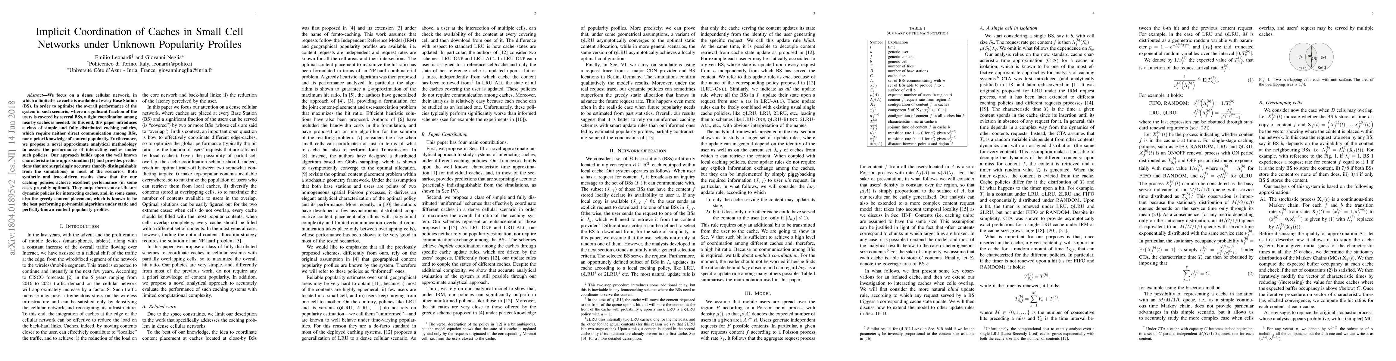 This paper introduces distributed caching policies for small cell networks with caches at each Base Station, aiming to optimize system performance without requiring direct communication or prior knowledge of content popularity. It proposes an analytical methodology for assessing cache coordination performance, showing that the proposed caching policies outperform existing dynamic and greedy content placement strategies.