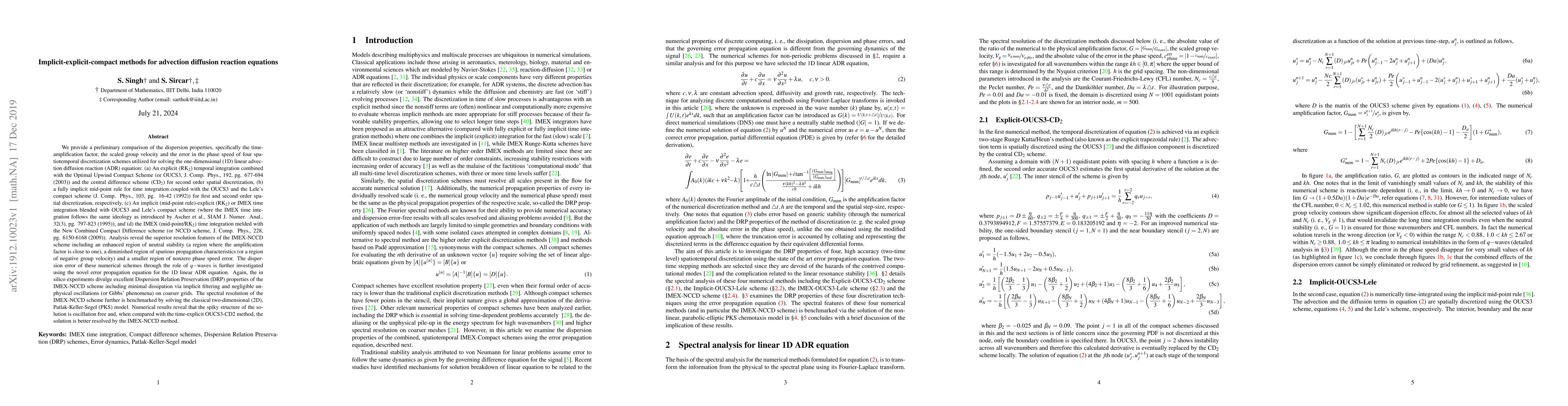This paper compares four numerical methods for solving 1D linear advection diffusion reaction equations, focusing on their dispersion properties. The IMEX-NCCD scheme shows superior resolution, enhanced stability, reduced spurious propagation, and minimal phase speed error. It also exhibits excellent dispersion relation preservation with minimal dissipation and negligible oscillations.