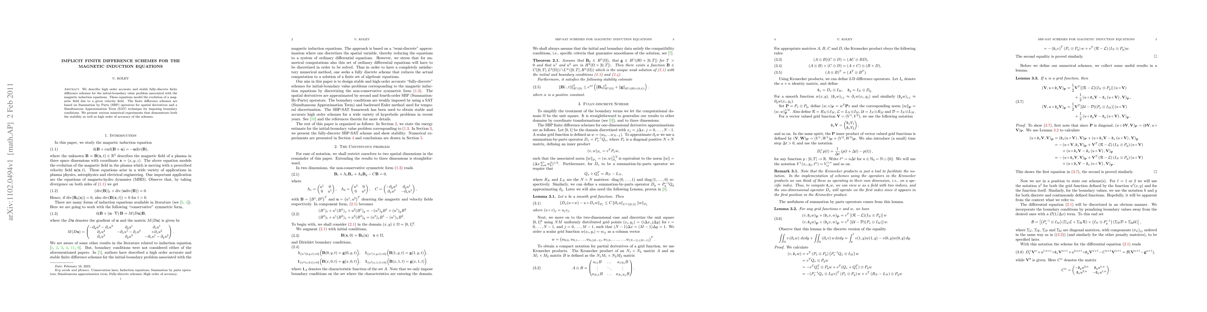 This paper develops high-order, stable finite difference schemes for solving magnetic induction equations using Summation by Parts operators and Simultaneous Approximation Terms, demonstrating their stability and accuracy through numerical experiments.