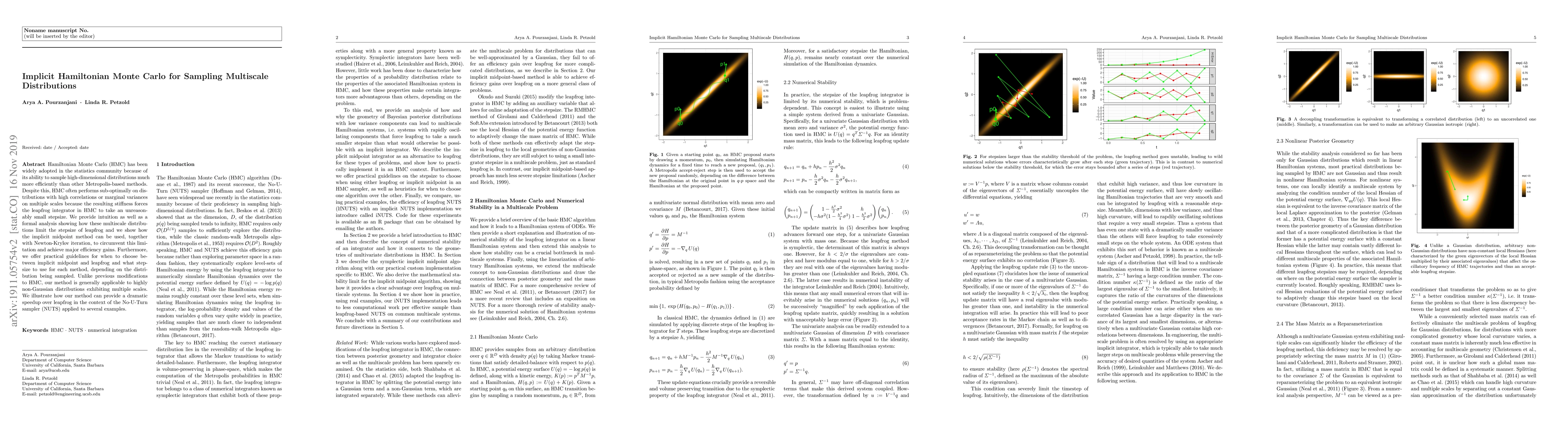 Hamiltonian Monte Carlo (HMC) has been widely adopted in the statistics community because of its ability to sample high-dimensional distributions much more efficiently than other Metropolis-based methods. Despite this, HMC often performs sub-optimally on distributions with high correlations or marginal variances on multiple scales because the resulting stiffness forces the leapfrog integrator in HMC to take an unreasonably small stepsize. We provide intuition as well as a formal analysis showing how these multiscale distributions limit the stepsize of leapfrog and we show how the implicit midpoint method can be used, together with Newton-Krylov iteration, to circumvent this limitation and achieve major efficiency gains. Furthermore, we offer practical guidelines for when to choose between implicit midpoint and leapfrog and what stepsize to use for each method, depending on the distribution being sampled. Unlike previous modifications to HMC, our method is generally applicable to highly non-Gaussian distributions exhibiting multiple scales. We illustrate how our method can provide a dramatic speedup over leapfrog in the context of the No-U-Turn sampler (NUTS) applied to several examples.