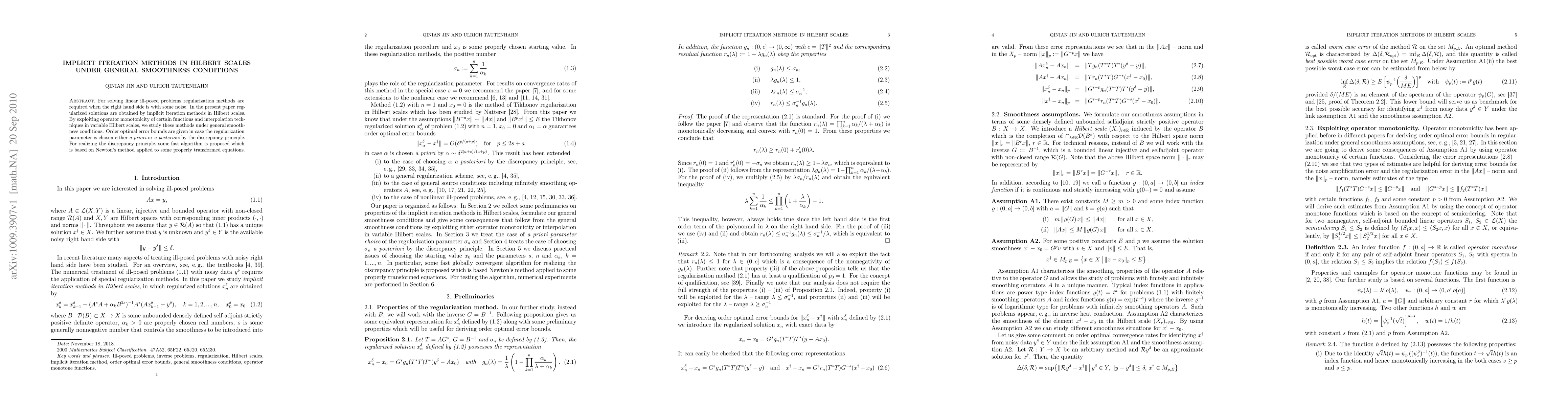 This paper explores implicit iteration methods for solving linear ill-posed problems using regularization techniques in Hilbert scales. It provides optimal error bounds under general smoothness conditions and proposes a fast algorithm based on Newton's method for implementing the discrepancy principle.