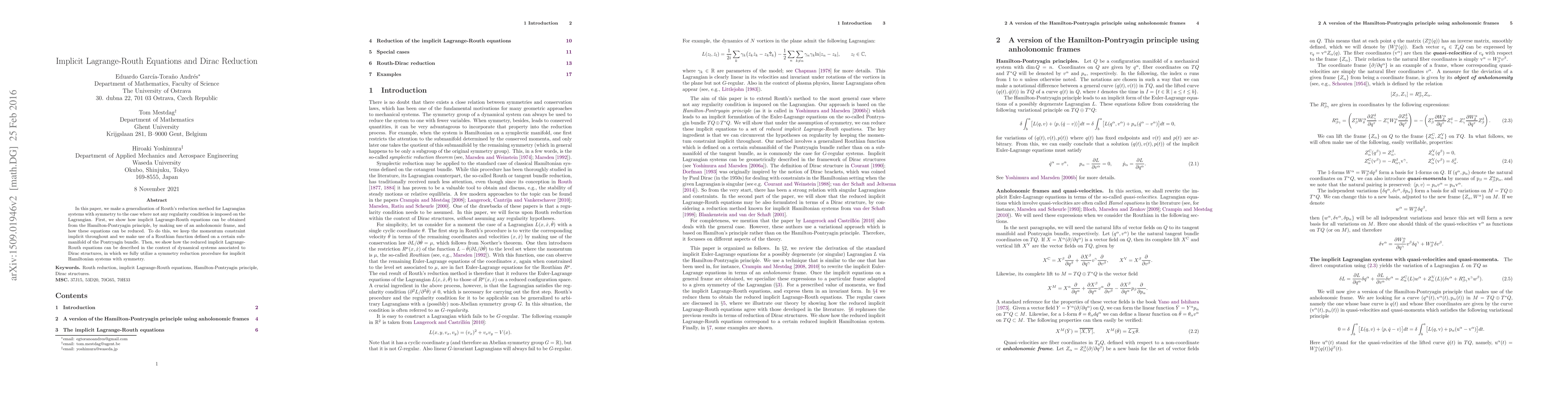 This paper generalizes Routh's reduction method for Lagrangian systems with symmetry, deriving implicit Lagrange-Routh equations without imposing regularity conditions on the Lagrangian. It utilizes an anholonomic frame and a Routhian function on a submanifold of the Pontryagin bundle to achieve reduction, and connects these to dynamical systems associated with Dirac structures.