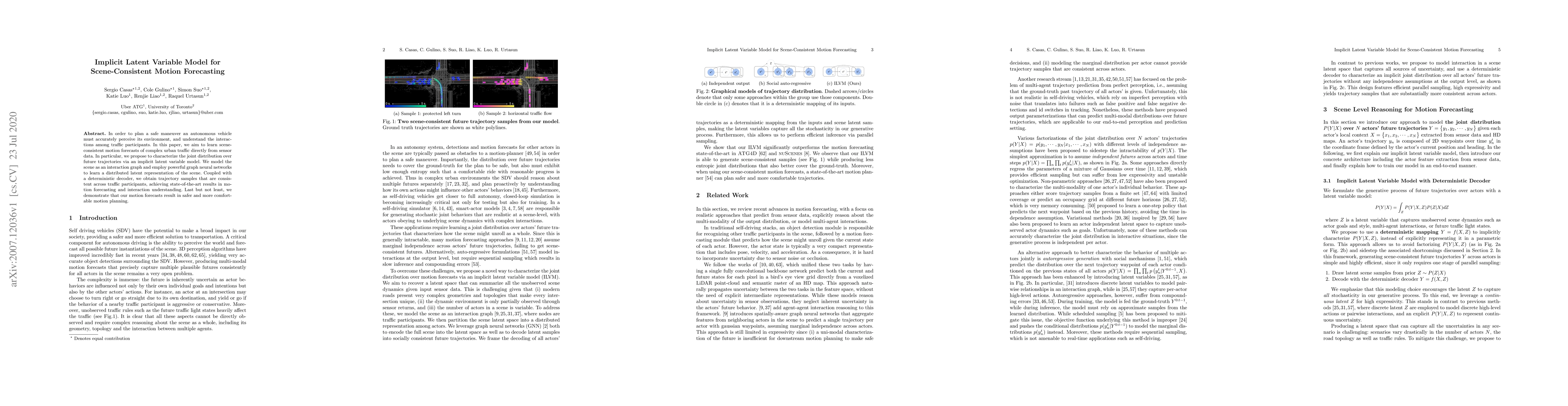 This paper proposes an implicit latent variable model to forecast scene-consistent motion for urban traffic using sensor data. It leverages graph neural networks to create a distributed latent representation of traffic interactions, achieving state-of-the-art results and safer motion planning.
