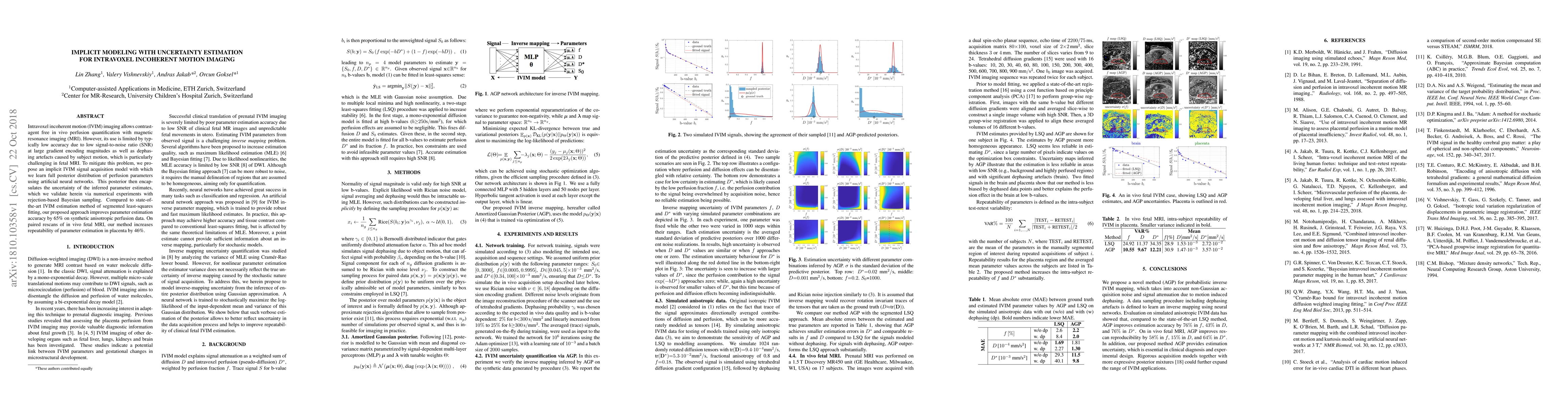 This paper proposes an implicit modeling approach with uncertainty estimation for intravoxel incoherent motion (IVIM) imaging to improve accuracy in perfusion quantification, especially in fetal MRI. The method uses neural networks to learn the full posterior distribution of perfusion parameters, enhancing parameter estimation accuracy by 65% on synthetic data and improving repeatability by 46% in in vivo fetal MRI.