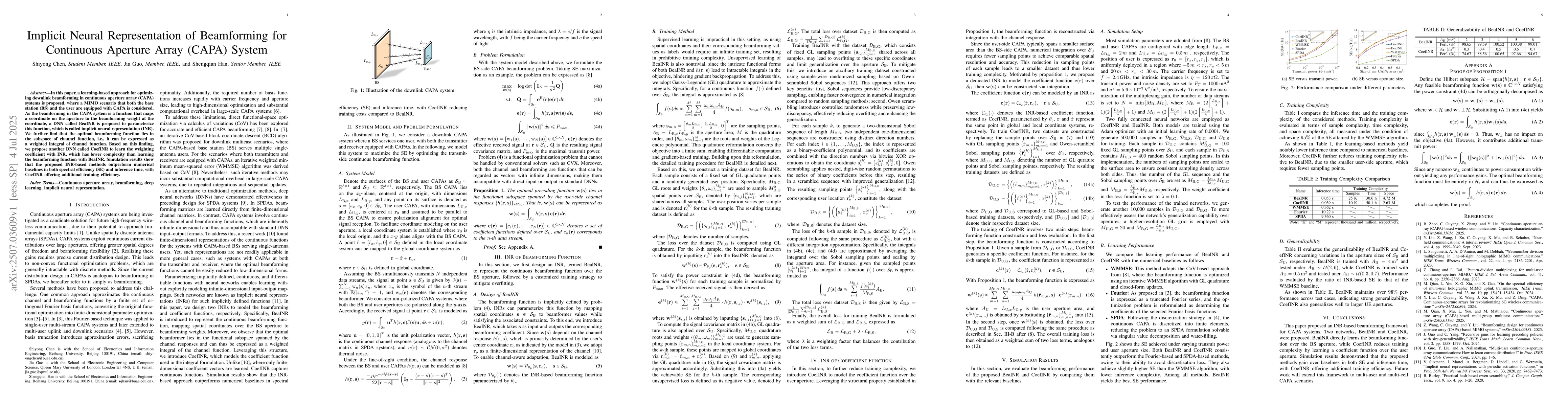 In this paper, a learning-based approach for optimizing downlink beamforming in continuous aperture array (CAPA) systems is proposed, where a MIMO scenario that both the base station (BS) and the user are equipped with CAPA is considered. As the beamforming in the CAPA system is a function that maps a coordinate on the aperture to the beamforming weight at the coordinate, a DNN called BeaINR is proposed to parameterize this function, which is called implicit neural representation (INR). We further find that the optimal beamforming function lies in the subspace of channel function, i.e., it can be expressed as a weighted integral of channel function. Based on this finding, we propose another DNN called CoefINR to learn the weighting coefficient with INR, which has lower complexity than learning the beamforming function with BeaINR. Simulation results show that the proposed INR-based methods outperform numerical baselines in both spectral efficiency (SE) and inference time, with CoefINR offering additional training efficiency.