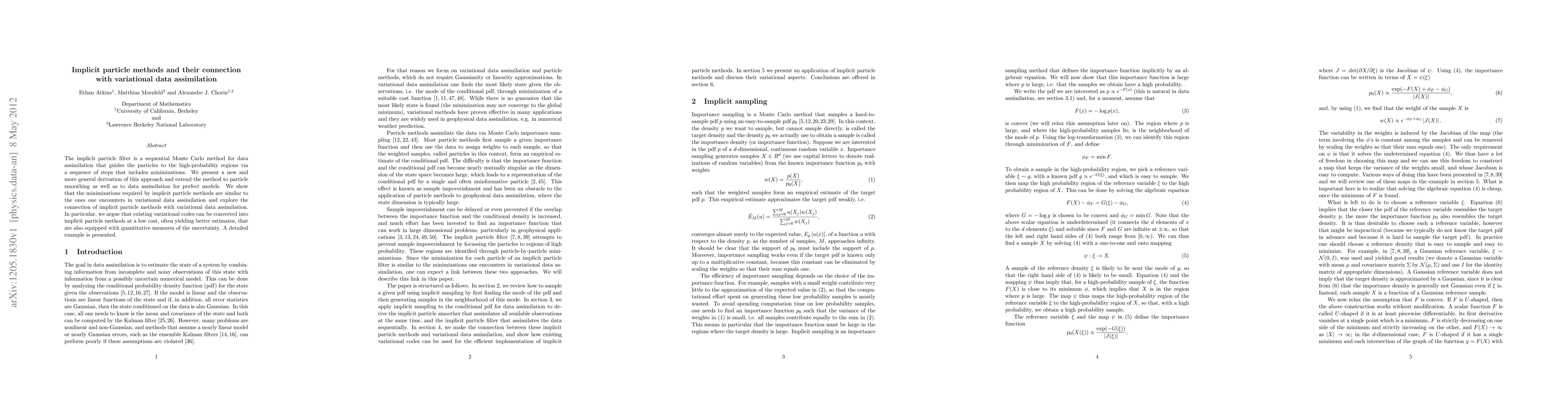 This paper introduces a new derivation of implicit particle filters, extending them to particle smoothing and perfect model data assimilation. It reveals a connection between implicit particle methods and variational data assimilation, demonstrating that existing variational codes can be repurposed with minimal changes to yield improved estimates and uncertainty measures.