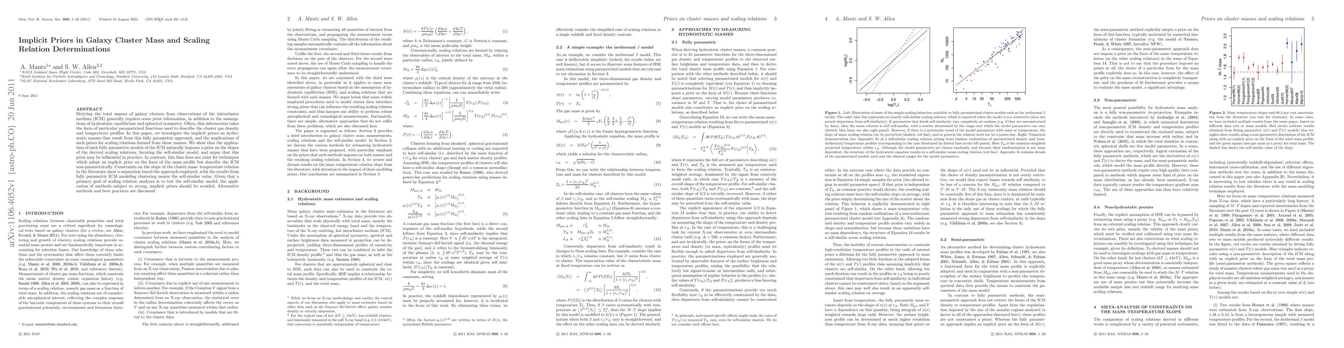 Deriving the total masses of galaxy clusters from observations of the intracluster medium (ICM) generally requires some prior information, in addition to the assumptions of hydrostatic equilibrium and spherical symmetry. Often, this information takes the form of particular parametrized functions used to describe the cluster gas density and temperature profiles. In this paper, we investigate the implicit priors on hydrostatic masses that result from this fully parametric approach, and the implications of such priors for scaling relations formed from those masses. We show that the application of such fully parametric models of the ICM naturally imposes a prior on the slopes of the derived scaling relations, favoring the self-similar model, and argue that this prior may be influential in practice. In contrast, this bias does not exist for techniques which adopt an explicit prior on the form of the mass profile but describe the ICM non-parametrically. Constraints on the slope of the cluster mass--temperature relation in the literature show a separation based the approach employed, with the results from fully parametric ICM modeling clustering nearer the self-similar value. Given that a primary goal of scaling relation analyses is to test the self-similar model, the application of methods subject to strong, implicit priors should be avoided. Alternative methods and best practices are discussed.