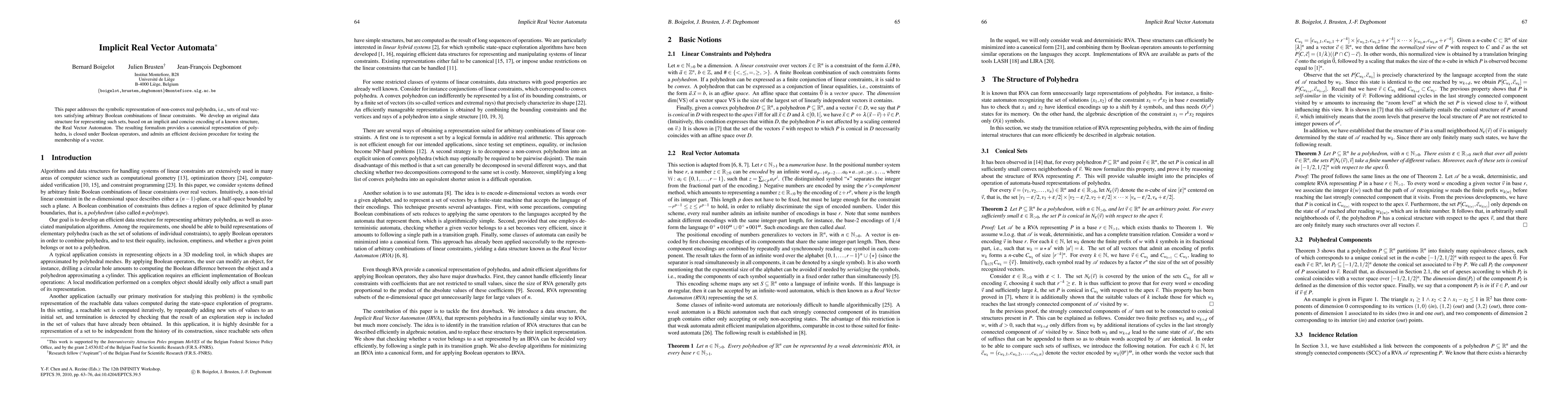 Researchers develop an implicit data structure called Real Vector Automata to represent non-convex real polyhedra, providing a concise and efficient way to test membership of vectors.