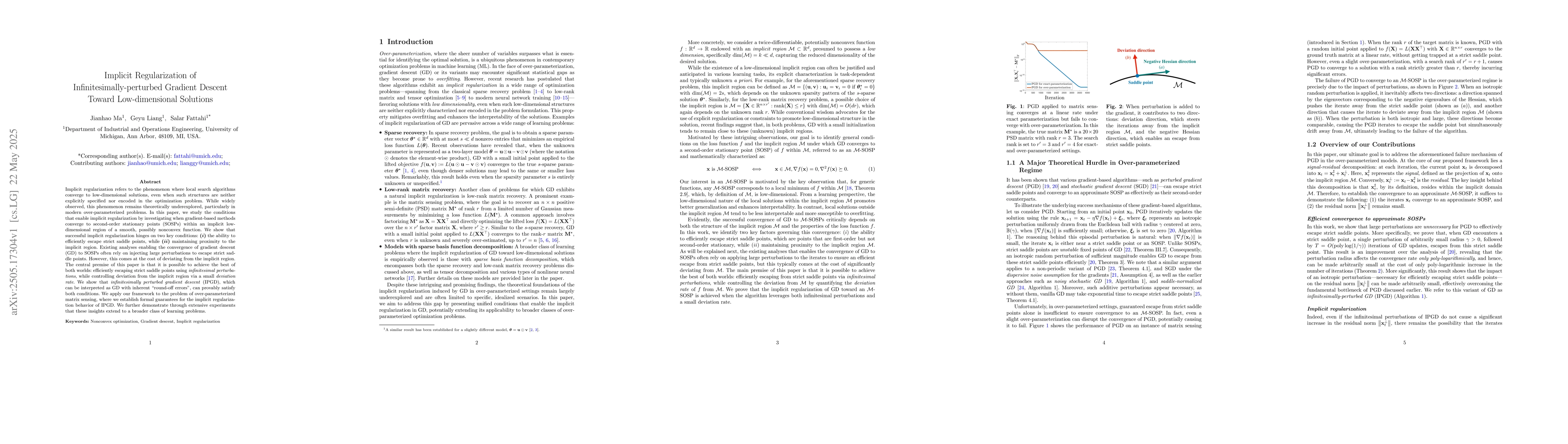 Researchers study how gradient descent algorithms can converge to low-dimensional solutions without explicit regularization, finding that infinitesimally perturbed gradient descent can efficiently escape strict saddle points while staying close to the solution region.
