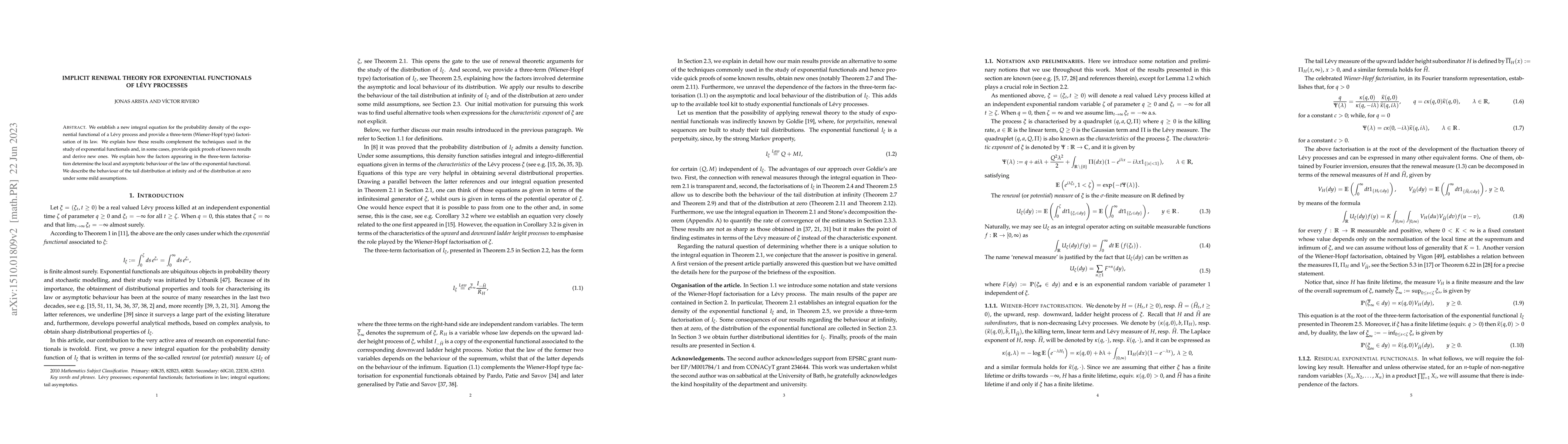 This paper introduces a new integral equation for the probability density of exponential functionals of Lévy processes and provides a Wiener-Hopf type three-term factorization of their laws. The results offer efficient proofs for known results and derive new ones, while also determining the local and asymptotic behavior of these functionals.