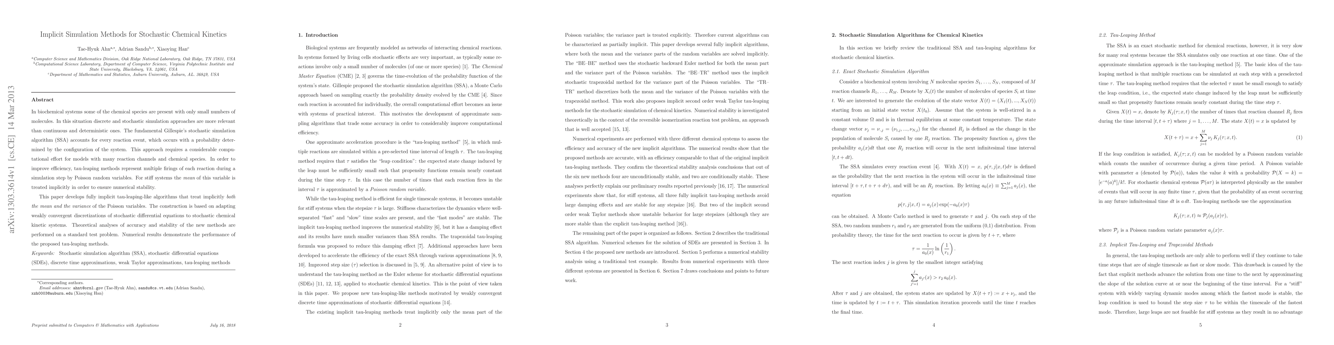 This paper introduces fully implicit tau-leaping methods for stochastic chemical kinetics, improving efficiency by treating both the mean and variance of Poisson variables implicitly. Theoretical and numerical analyses confirm the accuracy and stability of the new methods, enhancing simulations for biochemical systems with small molecule counts.