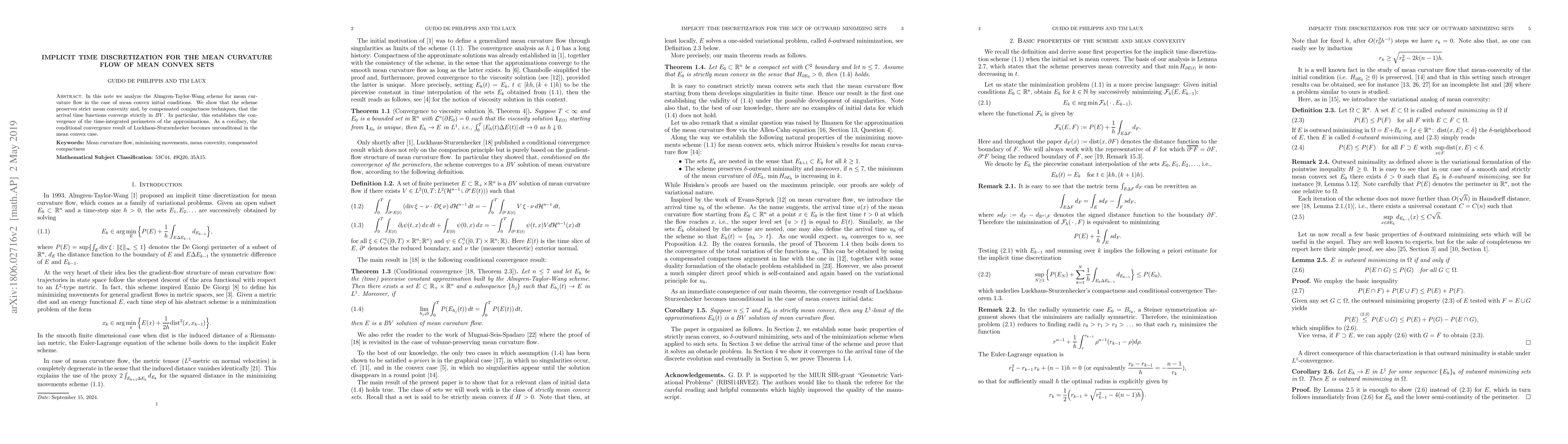 In this note we analyze the Almgren-Taylor-Wang scheme for mean curvature flow in the case of mean convex initial conditions. We show that the scheme preserves strict mean convexity and, by compensated compactness techniques, that the arrival time functions converge strictly in \(BV\). In particular, this establishes the convergence of the time-integrated perimeters of the approximations. As a corollary, the conditional convergence result of Luckhaus-Sturzenhecker becomes unconditonal in the mean convex case.