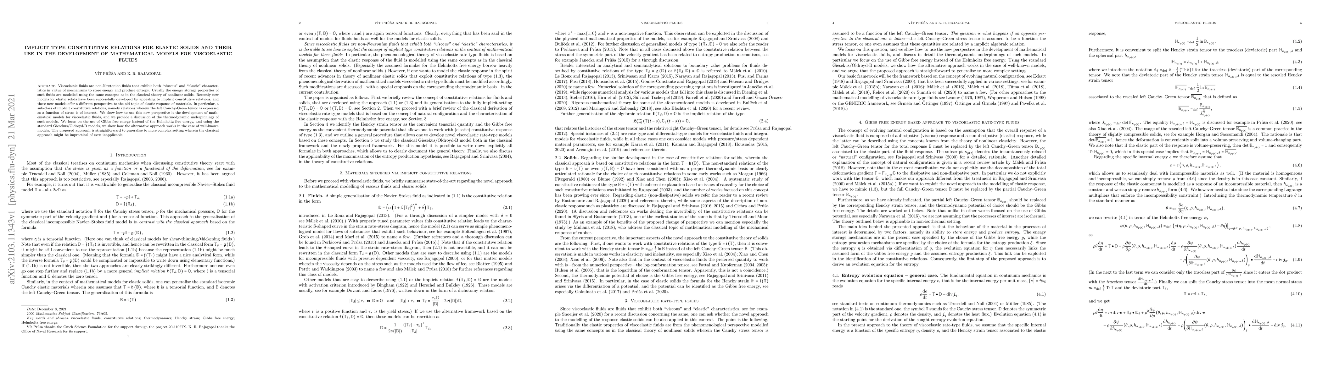 Researchers develop new mathematical models for viscoelastic fluids using implicit type constitutive relations inspired by elastic solids, offering a new perspective on the behavior of complex materials.