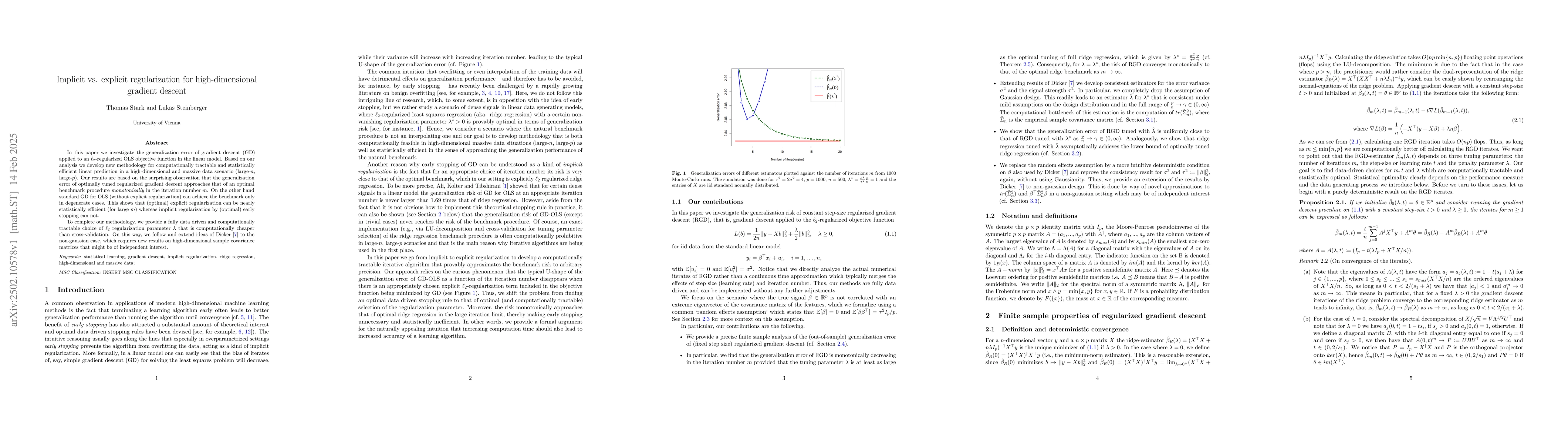 The paper investigates the generalization error of gradient descent applied to an ℓ2-regularized OLS objective function in the linear model, developing new methodology for high-dimensional and massive data scenarios.