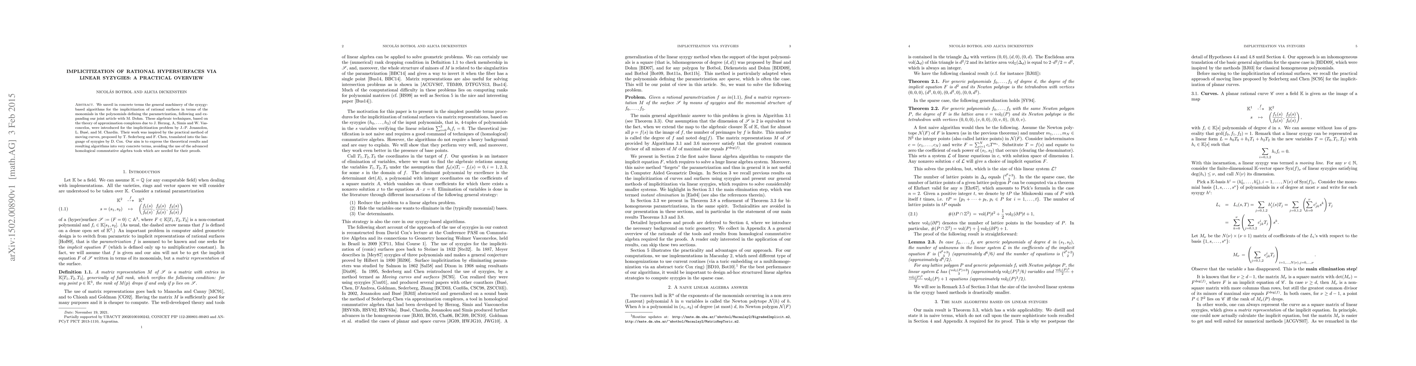 This paper provides a practical overview of syzygy-based algorithms for implicitizing rational surfaces, focusing on monomials in parametrization polynomials. It simplifies the theoretical algebraic techniques, rooted in approximation complexes and homological commutative algebra, into concrete computational methods.